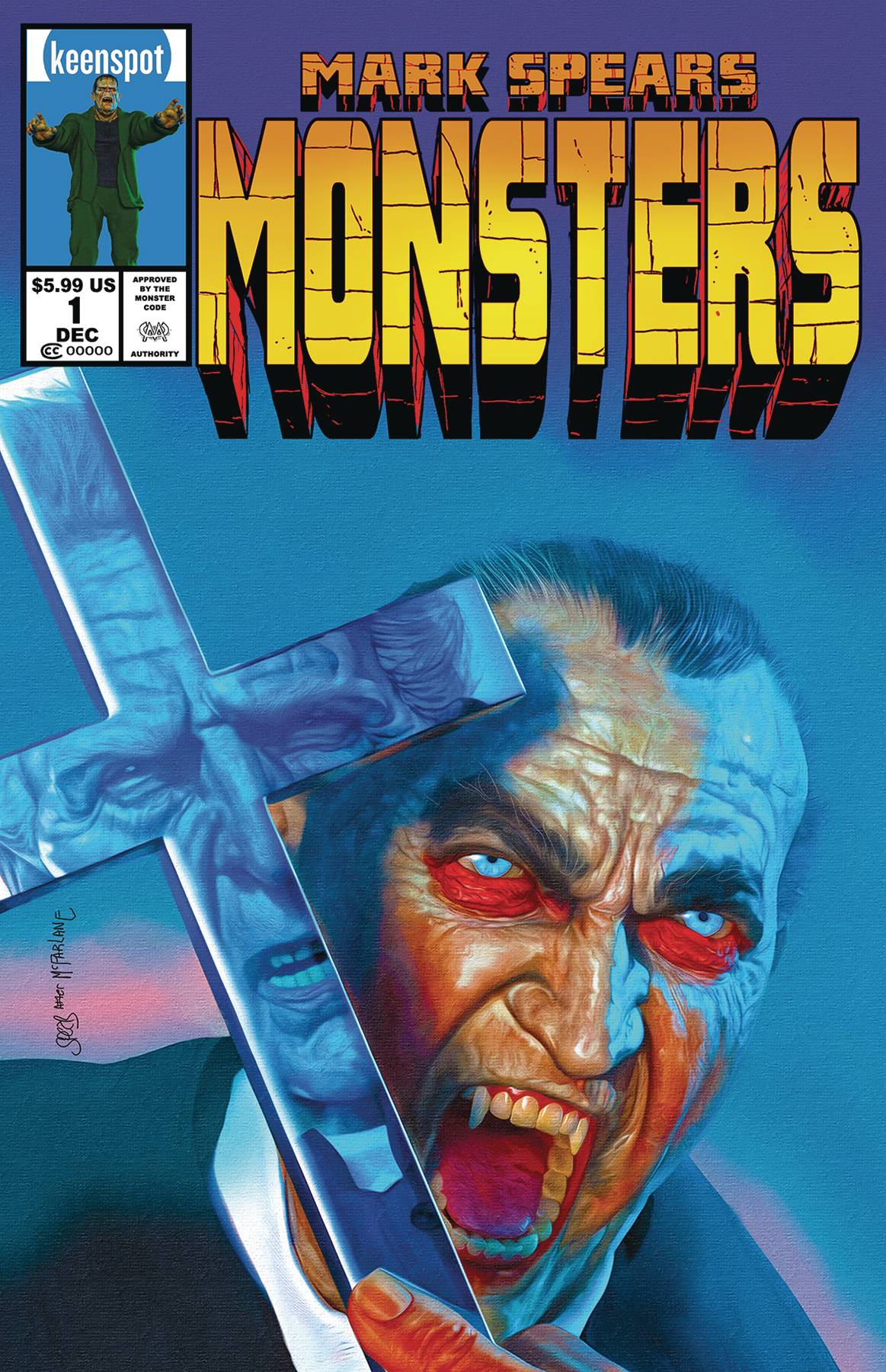 From award-winning artist Mark Spears (Spawn, Action Comics, Kneel Before Zod, Power Rangers, Rat City, and upcoming Spawn '77) comes all-new horror series Monsters! Based on his hit trading card series of the same name, Spears brings classic monsters to life with a modern twist. Set in the early 1980s, a retired Monster Slayer from a forgotten era learns that an old friend has disappeared, and a malevolent force from his past has resurfaced. Reluctantly, the mysterious Slayer is pulled back into the realm of the supernatural, determined to confront the ancient evil once again and prevent it from wreaking havoc on the world once more. Meanwhile, two seasoned detectives are investigating a series of grisly murders, and a group of kids embark on their own adventure after witnessing what they believe to be their recently deceased neighbor wandering the streets at night.