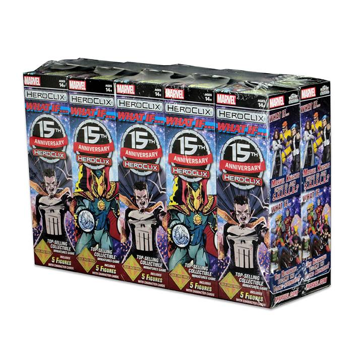 What if heroes become villains? What if someone new gains powers? The Marvel HeroClix: 15th Anniversary What If? Collection features the most iconic Marvel heroes and villains of all time, exactly like you`d expect them to be, and in spectacular alternate versions, too! HeroClix fans will be able to have their Punisher become the Sorcerer Supreme, or Daredevil join S.H.I.E.L.D. in ways never before possible on the HeroClix tabletop!