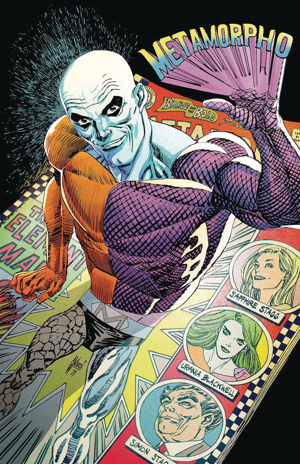 Who could win the heart of the most fabulous freak of all? Only one more fabulous still...the switched-on Sapphire Stagg! But when Metamorpho and Element Gal join superstar Sapphire in the spotlight, they find themselves in the gunsights of a deadly rival for her cultural crown--one mendaciously managed by the maliciously malevolent...Mad Mod! But what's Ol' Staggsy's connection to the coolest cat in crime...? Al Ewing and Steve Lieber have the answers--as the New Age of Metamorpho marches on!