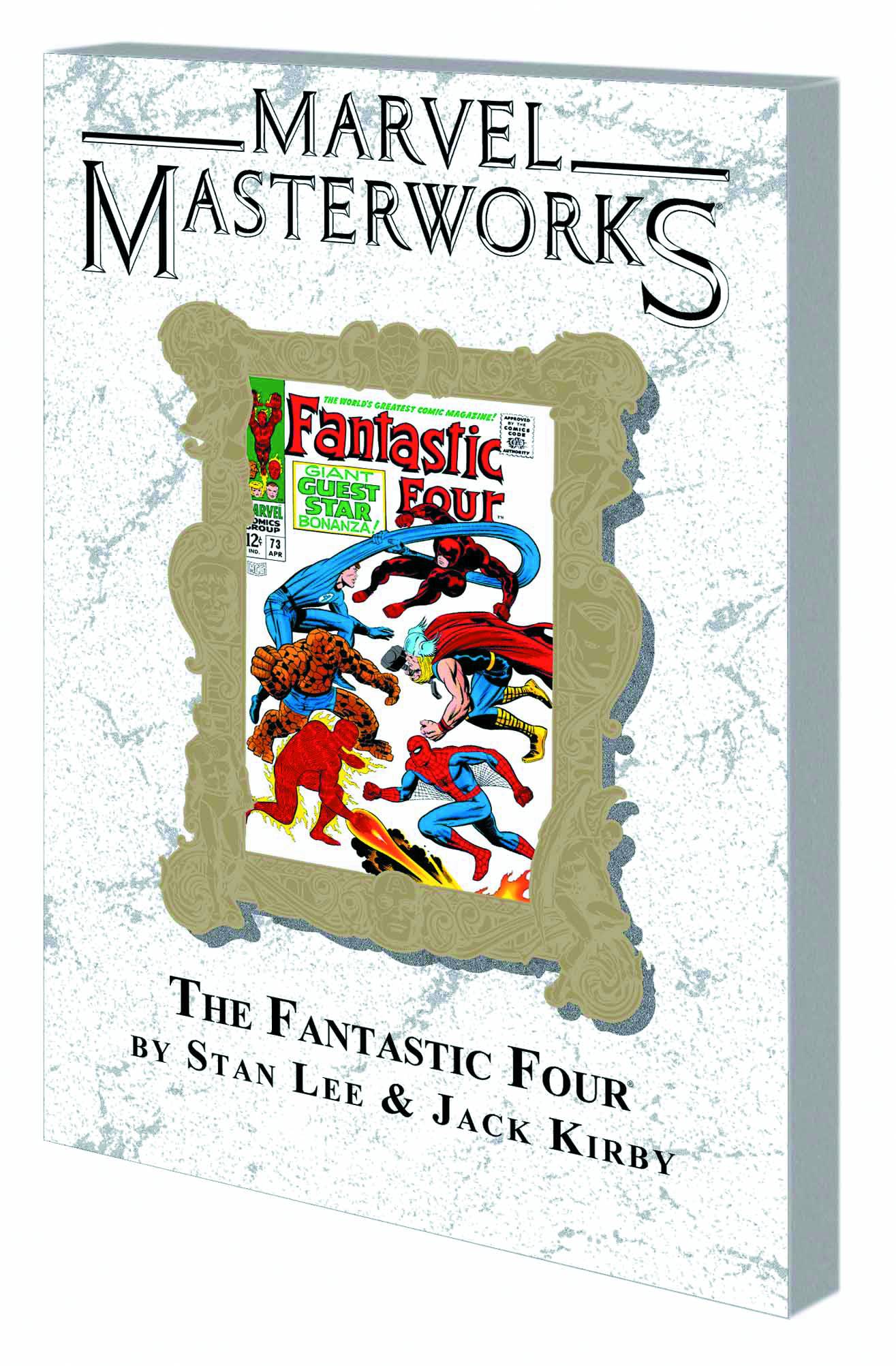 Pony up, True Believer, the eighth manic MASTERWORKS featuring the First Family of Funnybooks is coming your way! Collecting an ironclad cadre of classics, this one's packed with more drama than you can shake a Skrull at! The Silver Surfer pursued by none other than the world-devouring Galactus; the FF vs. Spidey, DD and Thor in a barnstorming brouhaha; a fantastic voyage into the Microverse to battle the Psycho-Man; the Thing - cured; the first appearance of Annihilus; Crystal of the Inhumans joins the FF; and one of comics' most historic moments, the birth of Franklin Richards! It just doesn't stop! This one's a humdinger so chock-full of excitement it's ready to burst! And it's brought to you by the minds that made Marvel magnificent, Stan and Jack! 'Nuff Said! Collecting FANTASTIC FOUR (1961) #72-81 and ANNUAL #6.