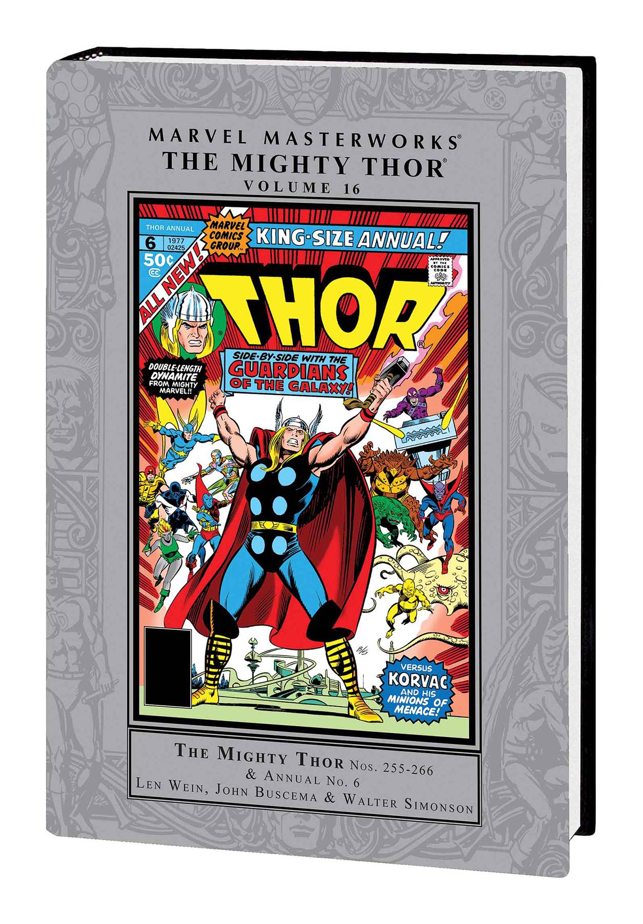 Mythic in scope, legendary in renown, the adventures of the mighty Thor are among the greatest that comics has ever seen. When writer Len Wein is joined by all-time great Thor artist Walter Simonson - not to mention John Buscema, an icon in his own right - there's no question that what's in store are Marvel Masterworks! Odin has disappeared. Asgard needs its All-Father, so Thor, Balder, Lady Sif and the Warriors Three venture across the vastness of space to find him. Their adventures will bring them into conflict with the Grey Gargoyle, the Enchantress and the Executioner, the Destroyer - and, of course, Loki! Also featuring a team-up with the Guardians of the Galaxy against the deadly Korvac! Collecting THOR (1966) #255-266 & ANNUAL #6 and MARVEL PREVIEW #10. Rated T