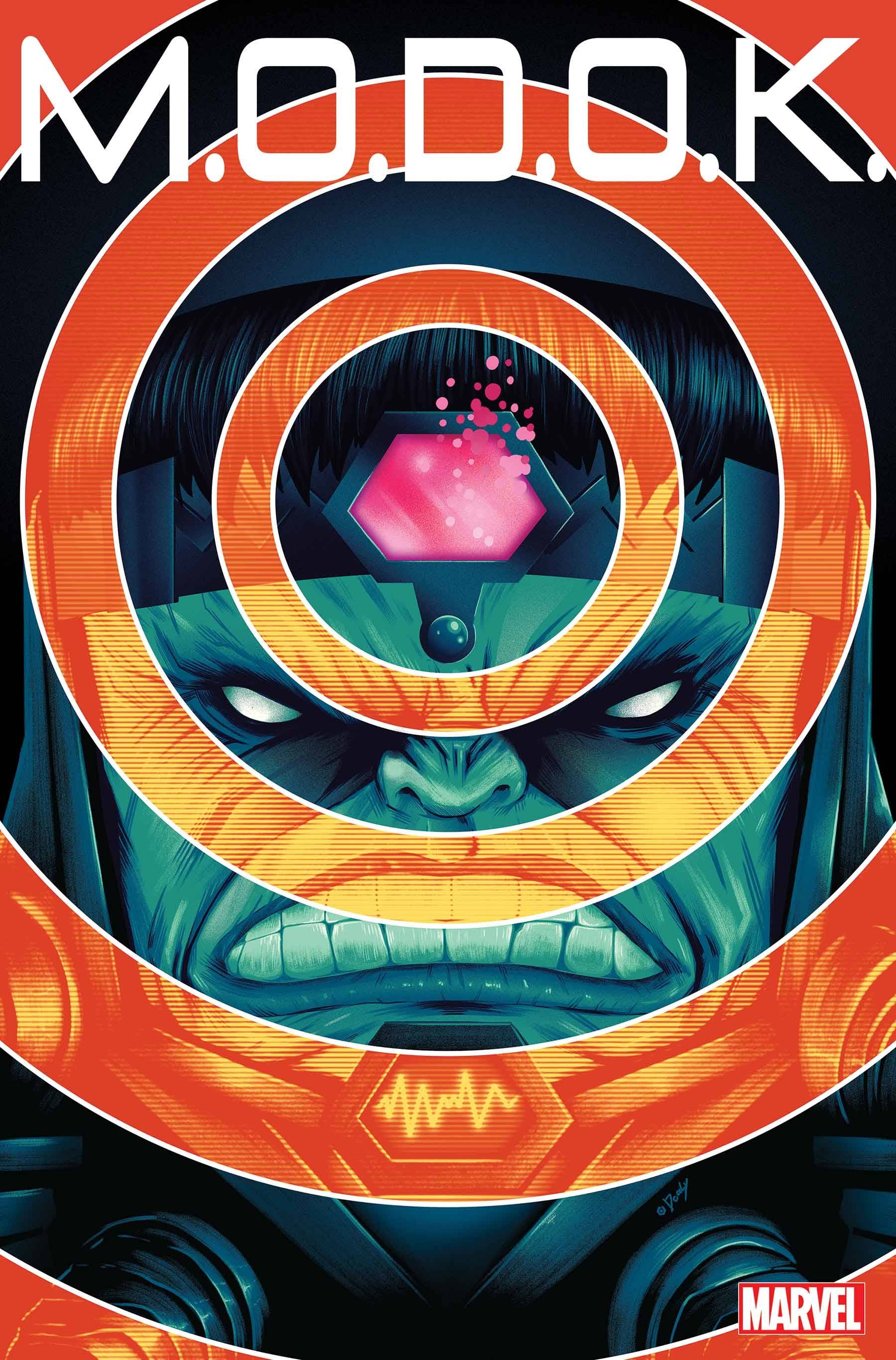 From Patton Oswalt and Jordan Blum, showrunners of the upcoming animated Marvel's M.O.D.O.K. show on Hulu, comes a journey into the mind of one of the biggest heads in the Marvel Universe! M.O.D.O.K. is the ruthless and brilliant leader of the terrorist organization AIM, outsmarting heroes and outmaneuvering his cutthroat colleagues gunning for his position... but when he begins to be haunted by memories of a family he never had, it leaves him unsure if he is losing his freakishly-large mind, or if perhaps there is a lot more to this enormous mind... or if there is something more sinister behind these visions. RATED T+