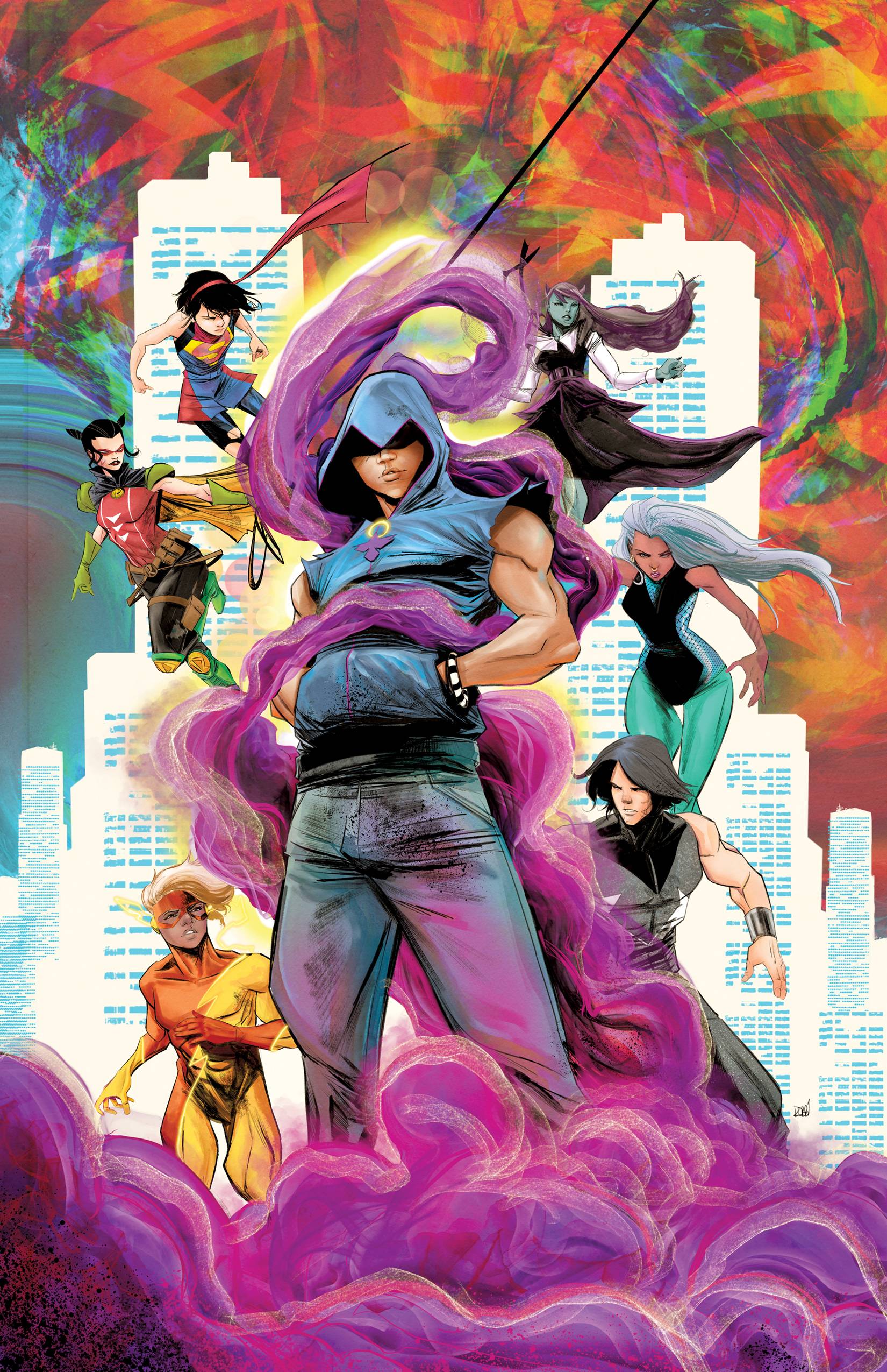 The explosive miniseries starring Kid Quick and their allies shifts into even higher gear as Teen Justice investigates the Church of Blood! When efforts to infiltrate the mysterious church backfire, one hero faces a devastating loss! Plus: Supergirl and Robin attract surprising allies when they discover an unexpected mystery, Aquagirl finds herself out of her element (and then some), and an encounter with the Justice Guild threatens the future of Teen Justice!