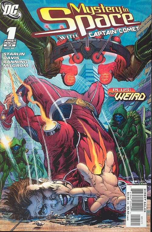 MYSTERY IN SPACE #1 Written by Jim Starlin Art by Shane Davis & Matt "Batt" Banning and Starlin & Al Milgrom Cover by Davis Variant cover by Neal Adams Get on board with comics legend Jim Starlin (Cosmic Odyssey, Thanos, Silver Surfer) and rising superstar artist Shane Davis (Batman Annual #25) as the DCU launches an 8-issue foray into the most spectacular regions of the galaxy! Who is the new Captain Comet? What is his connection to his predecessor? And what fate has befallen the original Captain Comet during the cosmos-shattering events of 52? Plus, a 16-page backup feature written and illustrated by the classic art team of penciler Starlin and inker Al Milgrom reveals the secret behind The Weird's return to the DCU after a long absence. As these mysteries are answered, even more are exposed! Retailers: For a signed edition, please see the Dynamic Forces section of Previews. This issue will be available with a variant cover. Please see the order
