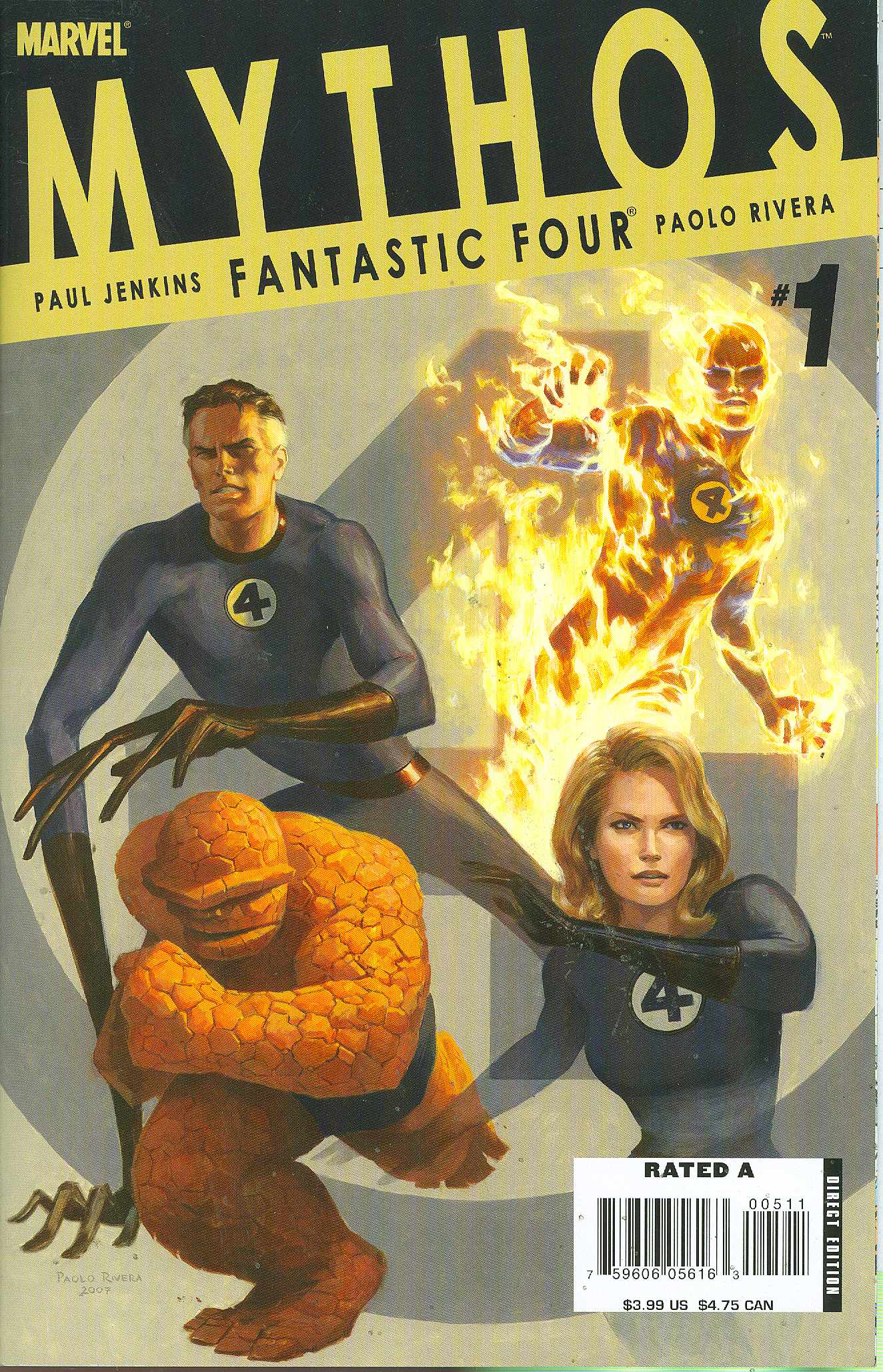 Written by PAUL JENKINS Art and Cover by PAOLO RIVERA The prestigious Mythos format returns as we find out how Marvel's First Family became the team they are today! Paul Jenkins tells the tale while Paolo Rivera delivers the beautiful fully painted origin of the FANTASTIC FOUR!