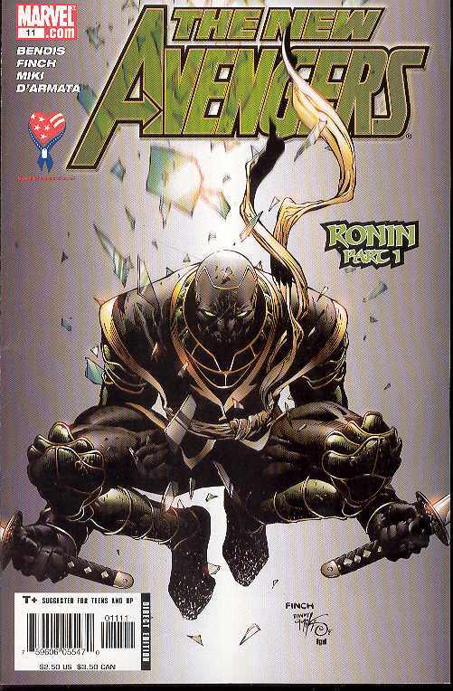 Written by Brian Michael Bendis Pencils & Cover by DAVID FINCH "RONIN" Part 1 (of 3) David Finch returns to debut the mysterious New Avenger everyone has been talking about all year!! Who is RONIN and why has Captain America recruited him into the fold? Bet it has something to do with Hydra helping the Silver Samurai get out of the country after he broke out of prison. Just sayin'! And what is Ronin's true identity? Here's a hint: He's not Daredevil!
