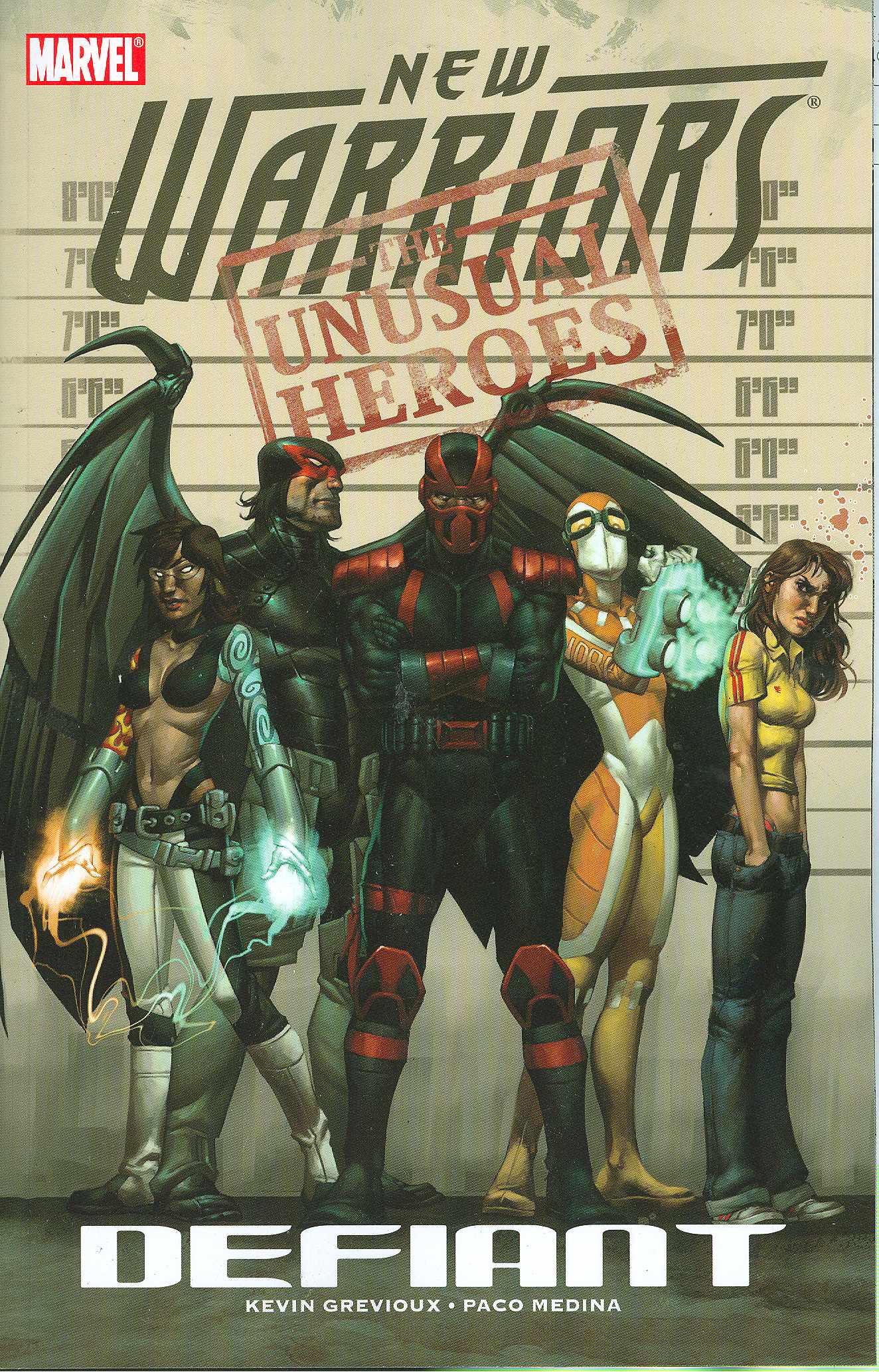 Written by KEVIN GREVIOUX Penciled by PACO MEDINA Cover by NIC KLEIN Someone is gift-wrapping super-villains for the police. Someone is defacing Super Human Registration posters. Someone is raising eyebrows all around town - from City Hall to Tony Stark's war chamber. And the only clue to their identity...two spray-painted letters: N.W. Who are these mysterious young upstarts that have dared to fight the powers-that-be? And what do they want from a de-powered mutant named Sofia? Are the New Warriors truly back from the dead? Or has something new risen from the ashes of Stamford? Collecting NEW WARRIORS #1-6. PRODUCT UPDATE (111407): Originally solicted as New Warriors: Next Right Thing, this volume will be entitled New Warriors: Defiant.