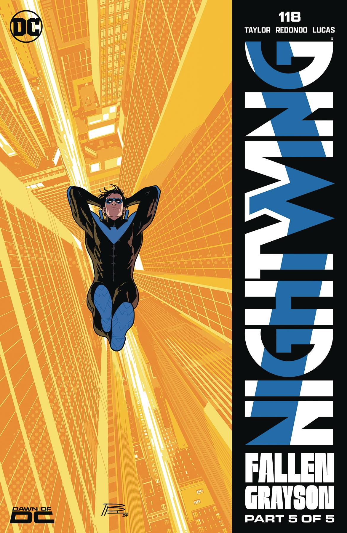 THE FINAL ISSUE OF TOM TAYLOR AND BRUNO REDONDO'S AWARD-WINNING RUN! Embark on an exhilarating journey through the streets of Blüdhaven as we bid a heartfelt farewell to the dynamic duo of Tom Taylor and Bruno Redondo in the epic conclusion to their award-winning run. With Nightwing's fear of heights overcome, he returns to Bludhaven for one final face-off with Heartless and Tony Zucco. It's the battle you've all been waiting for! And if we've learned anything from Nightwing these last couple of years, we know he never has to do it alone. One thing's for certain though, Bludhaven will never be the same after this!