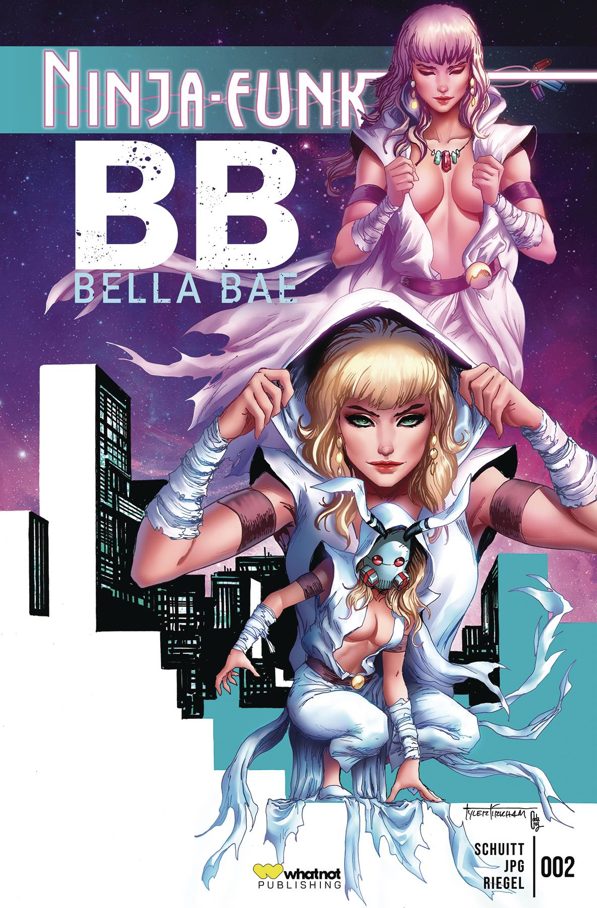 Tyler Kirkham, the best-selling artist and comic book author who has worked on iconic titles like Green Lantern, Transformers, X-Men, and Teen Titans, pays tribute to an iconic cover in this homage to Edge of the Spider-Verse. In the wake of the disastrous events of Issue 1, Ninja Funk finds themselves captured, broken, and without hope. Against the combined forces of all those they've wronged, the fate of the Universe might have to wait until Ninja Funk can get their collective heads off the chopping block!