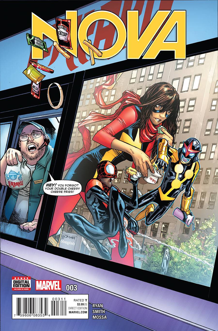 • NOVA IN NEW YORK! • Sam Alexander and the other ALL-NEW, ALL-DIFFERENT AVENGERS team up, and love might be in the air! • Featuring guest stars MILES MORALES and KAMALA KHAN! Rated T