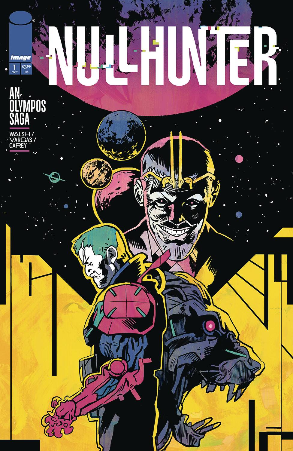 Mini-Series Premiere. From acclaimed creator Michael Walsh and with art by rising star Gustaffo Vargas, Nullhunter is a kinetic cyberpunk retelling of the Labors of Hercules. Clay is a war hero who faces unspeakable tragedy after returning home. Seeking justice, he's forced into service for his estranged father's powerful company, OLYMP0S. His first mission takes him to faraway N3M-3A on the trail of a hijacked shipment of war lions.