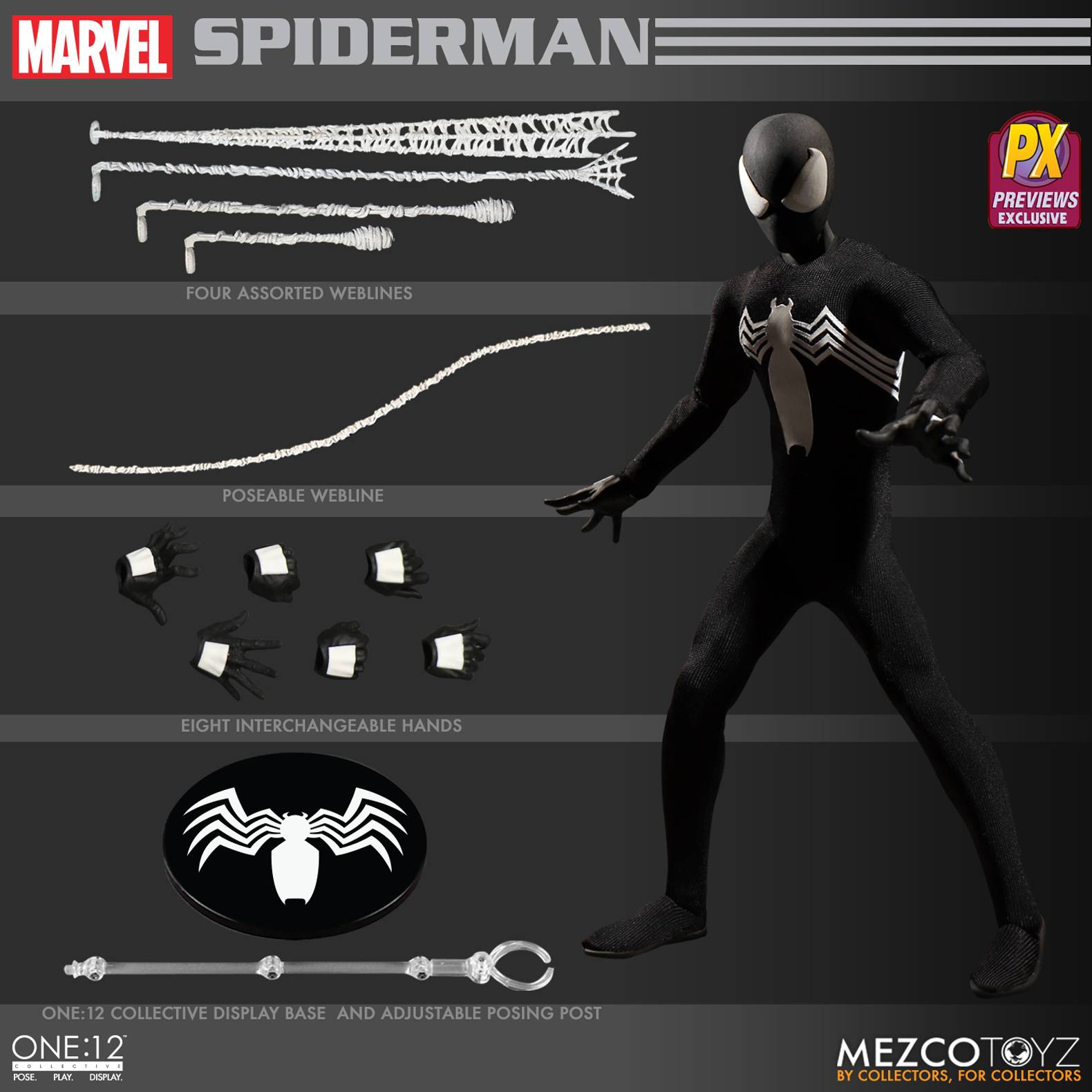 ONE-12 COLLECTIVE MARVEL SPIDER-MAN BLACK VERSION PX ACTION FIGURE
