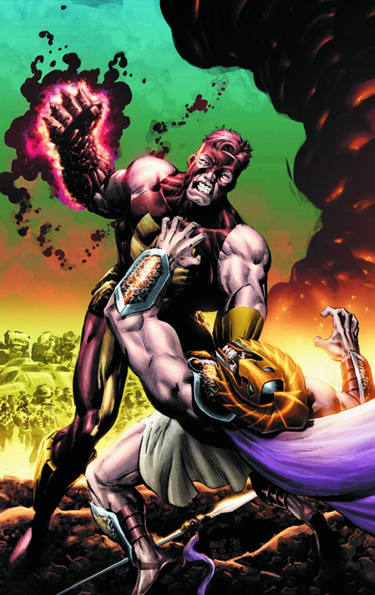 Written by DAN DIDIO Art by KEITH GIFFEN Cover by PHILIP TAN Geo-Force goes on the offensive and leads Markovia's army into battle, only to come face-to-face with the male Amazon known as The Olympian. Meanwhile, after narrowly escaping death at the hands of Simon Stagg, secrets are revealed as Freight Train leads Metamorpho and Owlman across the northern border into Canada in search of their missing teammate, Black Lightning.