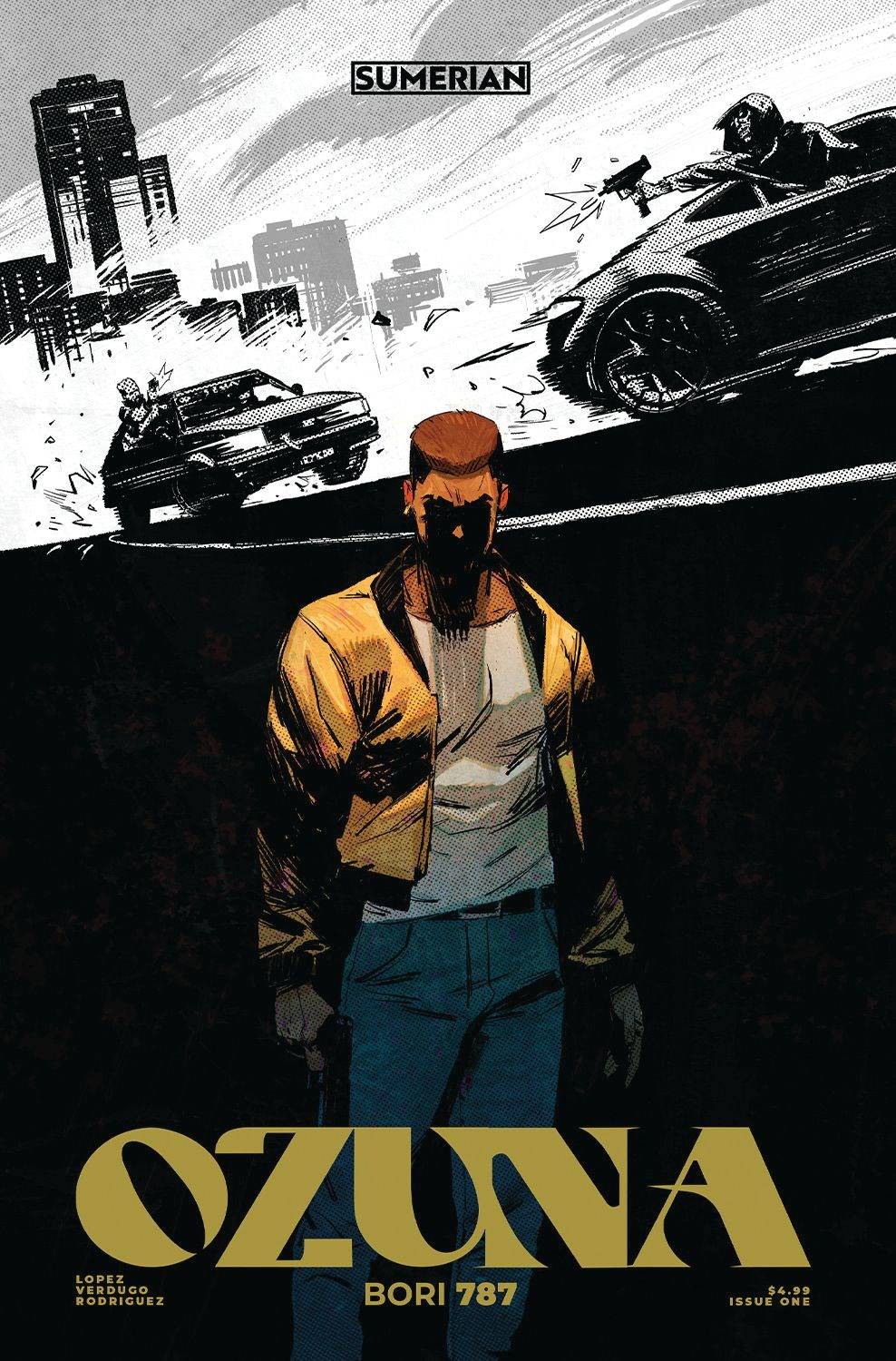 Cover by Roberto Ricci, best known for his work on Cyberpunk 2077 (Dark Horse). A private detective known for keeping Puerto Rico safe from the criminal underbelly is on a case concerning a human trafficking ring when a clandestine spy agency recruits him. Ozuna, the global superstar and one of the best selling Latin artists of all time is Agent 787! In collaboration with OZUNA, one of the best-selling Latin music artists of all time, with more than 20 million records sold. Ozuna has the most one-billion viewed videos on YouTube, he's won two Latin Grammy Awards, five Billboard Music Awards, twelve Billboard Latin Music Awards, four Guinness World Records, one of TIME Magazine's 100 most influential people, and has even appeared in the Fast and Furious franchise.