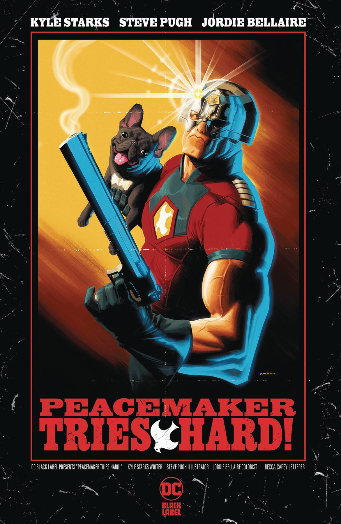 Having earned his release from the Suicide Squad, Peacemaker wants to try to do normal superhero stuff for a change. Unfortunately everyone, including the bad guys, thinks he sucks at superhero stuff. But when busting up a terrorist ring introduces Christopher Smith to the cutest puppy to ever walk (awkwardly) on four legs, he finds the unconditional love he's been de¬nied his whole life...until the dog is kidnapped by a super-villain with some very un-super-heroic plans for Peacemaker's brand of ultraviolence. Will he help an unstable criminal steal the world's most valuable--and dangerous-- DNA? Honestly, Christopher's pretty lonely, so it probably just depends on how nicely they ask...