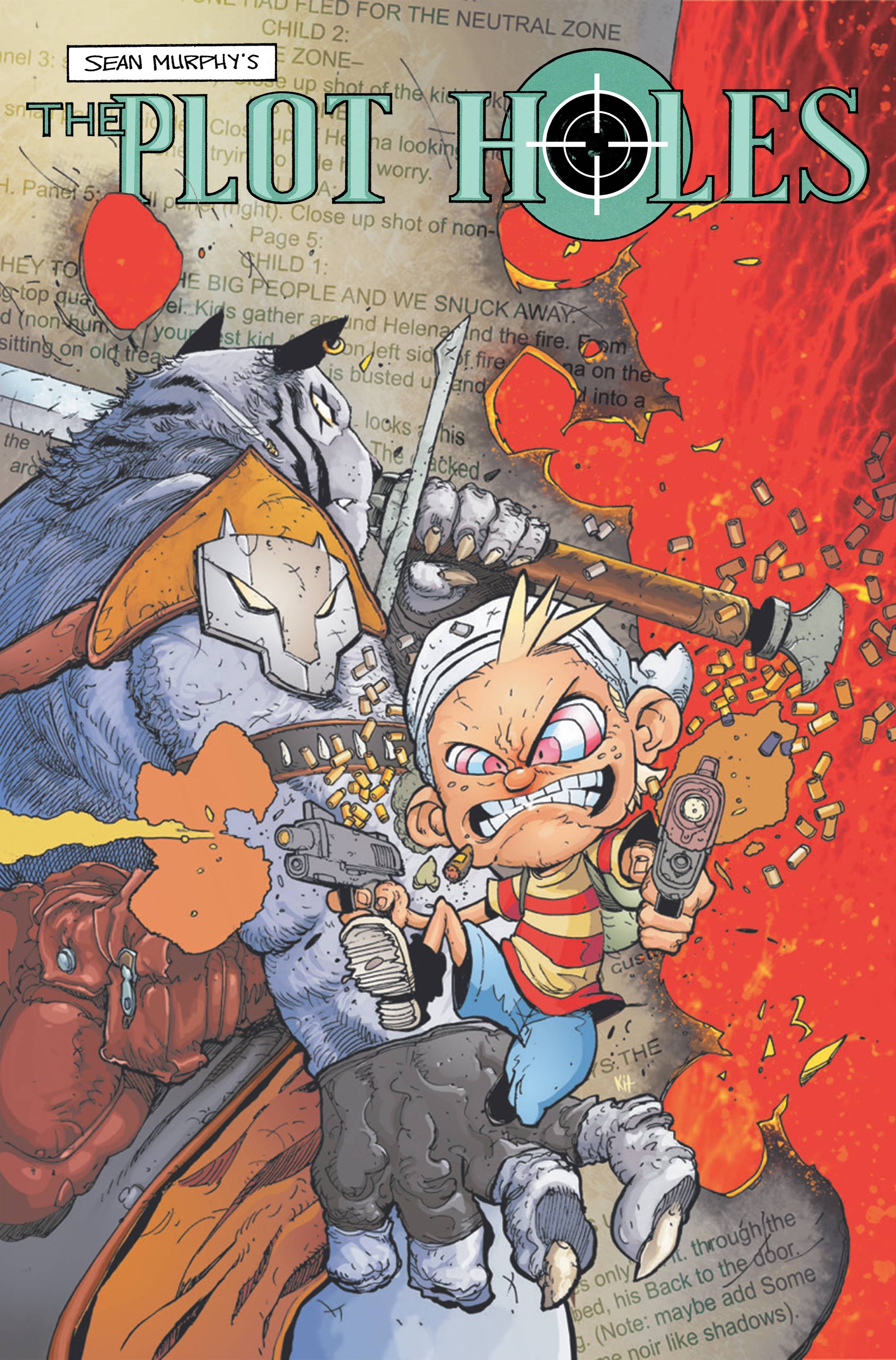 Cover by Kit Wallis, the artist behind such series as Mr Eastah, Warcorns, Good Boy, Hellicious, and Massive's own QUESTED! Superstar artist Sean Gordon Murphy, known for his groundbreaking series Batman: White Knight, delivers an all-new tale of world-hopping adventure. THE PLOT HOLES are a squad of fictional warriors who transport themselves into the pages of other books, using their unique skills to save the plots in order to stop them from being destroyed. And Cliff Inkslayer is their newest recruit, a comic creator who's just realized his world isn't real. Now Cliff is about to head out on his first Edit with his new team. Did his whole life turn upside down? Yes. Does he really know his new team? No. He should be ready, right? Prepare for deadly space worms, historical heroes, and the fight for the fate of the whole program...good luck Cliff!