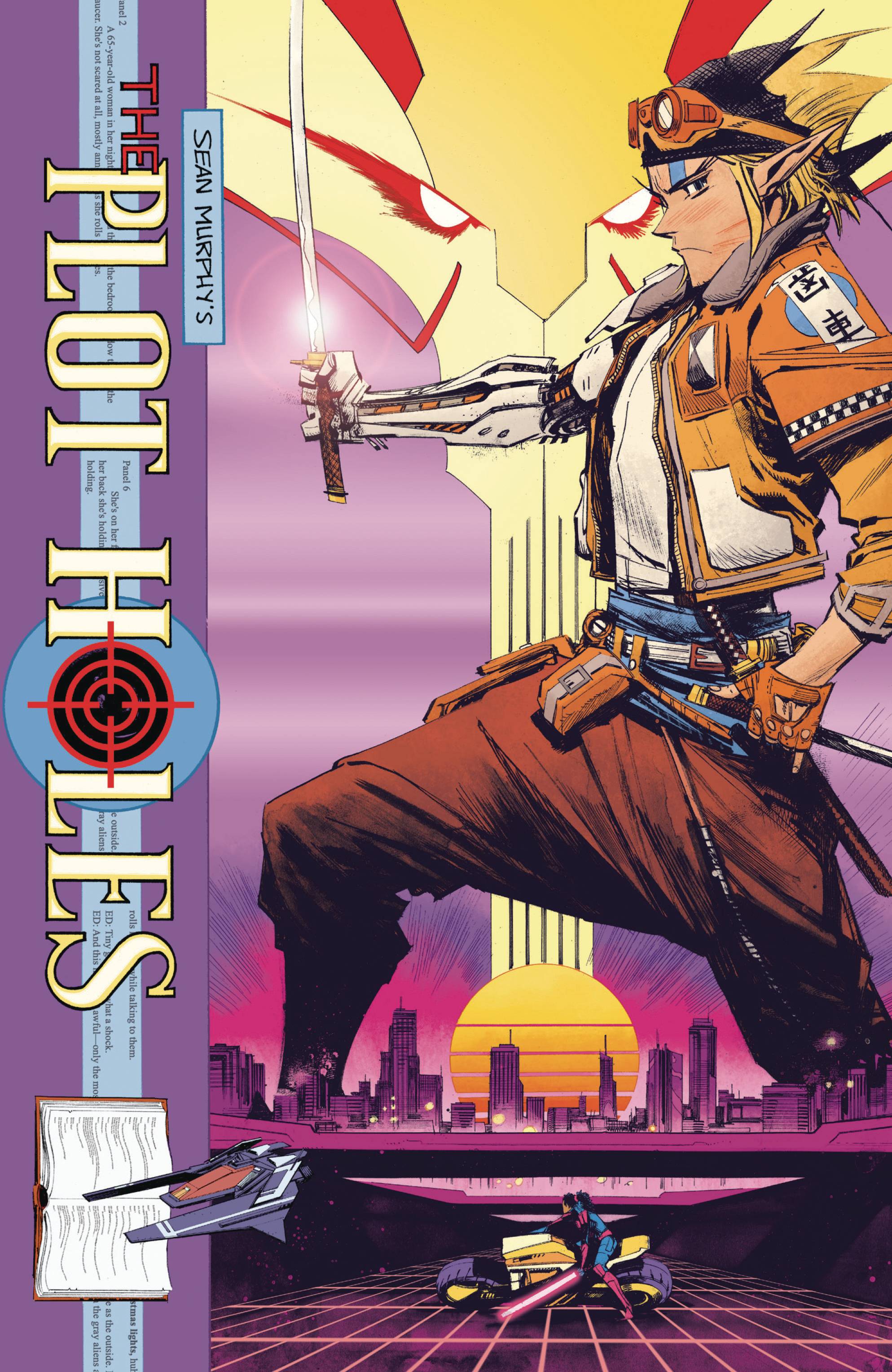 Superstar artist Sean Gordon Murphy, known for his groundbreaking series Batman: White Knight, delivers an all-new tale of world-hopping adventure. THE PLOT HOLES are a squad of fictional warriors who transport themselves into the pages of other books, using their unique skills to save the plots in order to stop them from being destroyed. And Cliff Inkslayer is their newest recruit, a comic creator who's just realized his world isn't real. Well, now we know who the real villain is, right? Wait, what makes a villain a villain? Why ARE there villains on this team? Not to mention Ed really seems to be hiding something. Are you ready to turn the page into the world of comic books, vampire revenge novels, and a secret third book? Time is running out, The Plot Holes' fate is looking grim, the surprises are plenty... this is getting exciting! It's time for someone to make a bold move before it's too late...