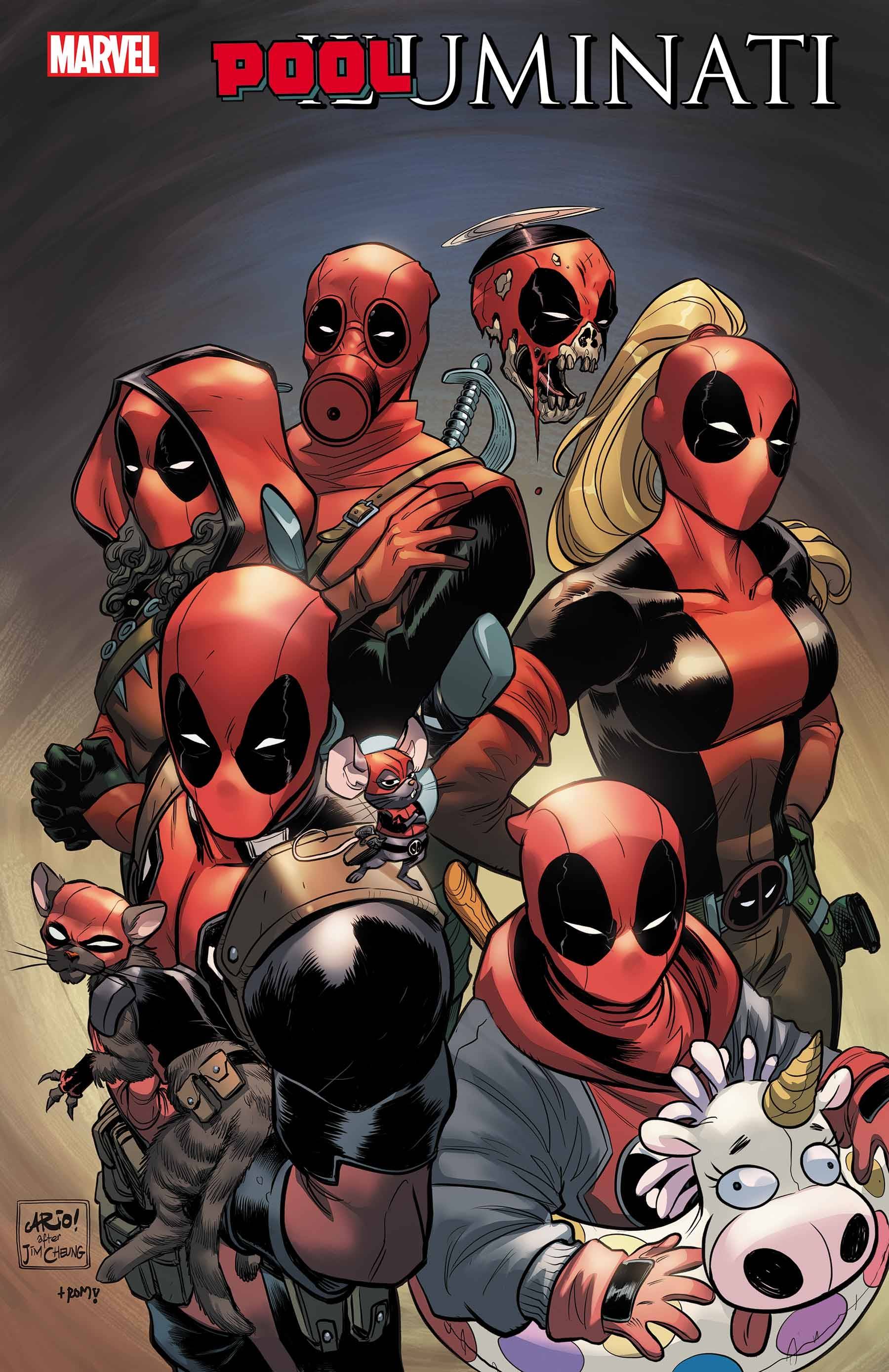 THE ELITE 'POOLS ASSEMBLE! • There are those who hold power, and those who hold the secret power in the world. Those who shape the world around us, who pull the strings, unseen. They are...the POOLUMINATI. Or, wait, no, that's the Illuminati, so what the heck does the Pooluminati do? It's TOO SECRET...but WADE WILSON is ABOUT TO FIND OUT! • The most elite DEADPOOLs across the Multiverse assemble, and they need the 616's Deadpools. But will Wade (with Ellie's help) prove himself worthy of the Pooluminati? And even if he does...will the conspiracy theory they uncover spell disaster for 'Pools everywhere? • PLUS: A Princess and Elliepool short by by Quasarano/Balám! PARENTAL ADVISORY