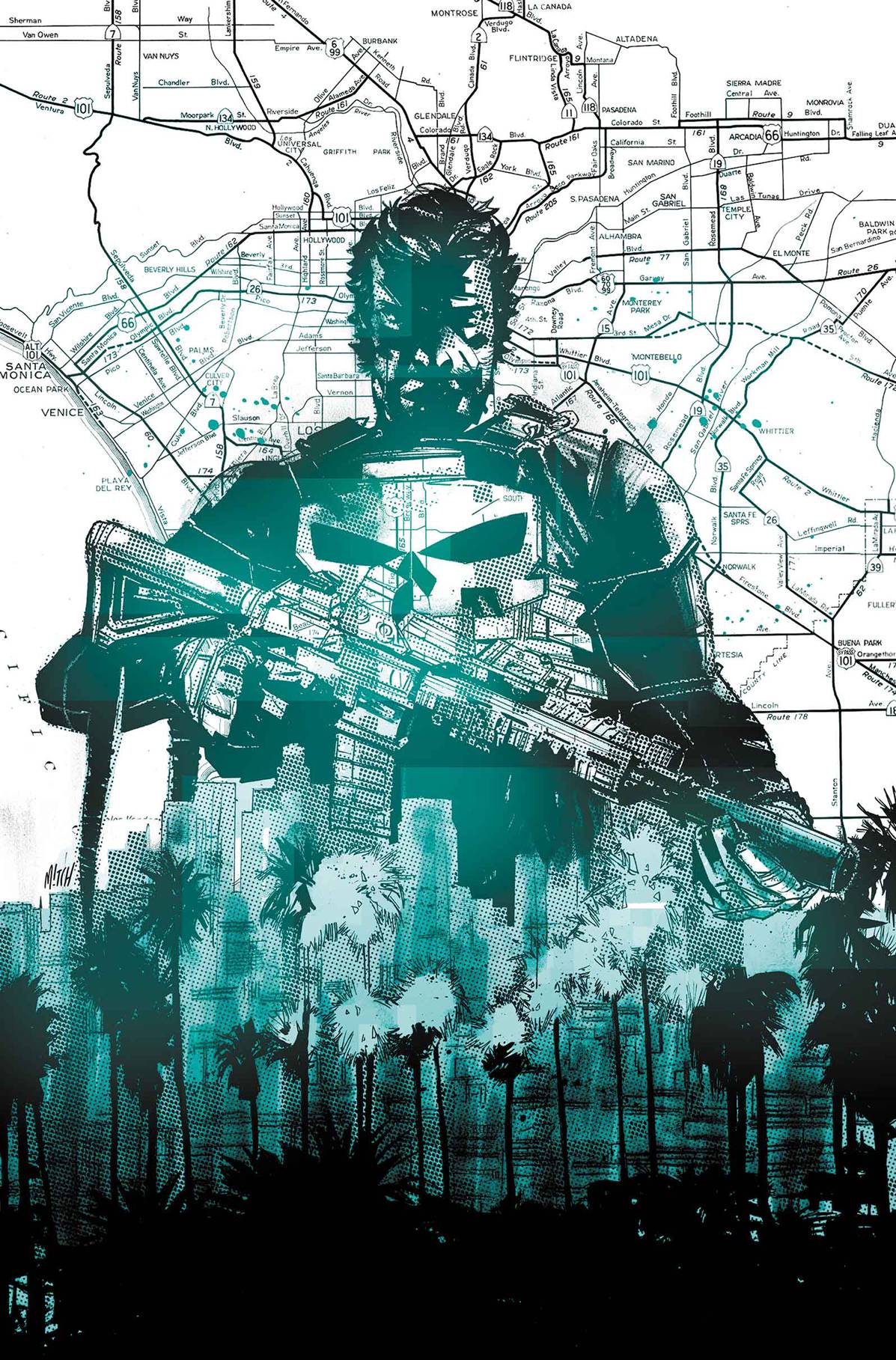 For years, The Punisher has waged a war on crime in New York City with an array of very large guns, but a lead on a major source of drugs, weapons, and more has set his many sights due west. NOW! Frank Castle's in the City of Angels, looking to give the devil his due. Things aren't all they appear, though, with a highly trained military hit squad hot on Frank's tail. Caught between a posse of Punisher predators and targets of his own one-man-war, Frank's manifest destiny may be a shallow grave!