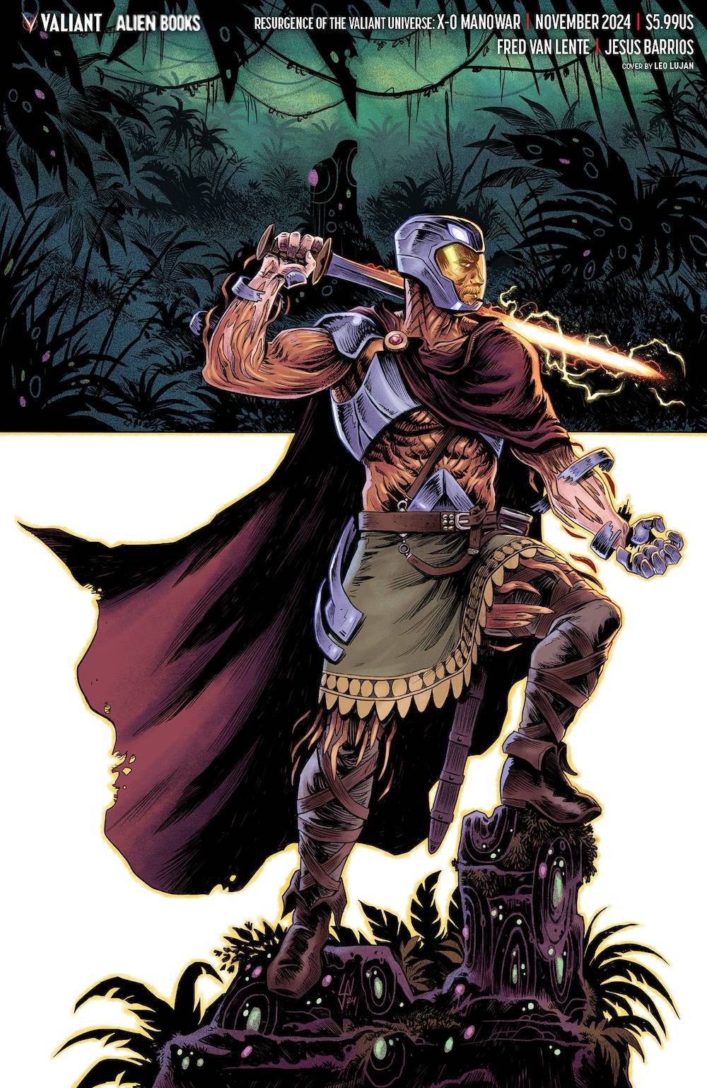 A RESURGENCE TIE-IN Explore the essence of Aric, X-O Manowar. A time-displaced Visigoth warrior turned superhero by a sentient alien armor, Aric is now separated from his powerful ally of armor, Shanhara. Stranded in an alien jungle, he must survive while being hunted by the force that once empowered him. Can Aric endure this ultimate challenge and prove his heroism without Shanhara?