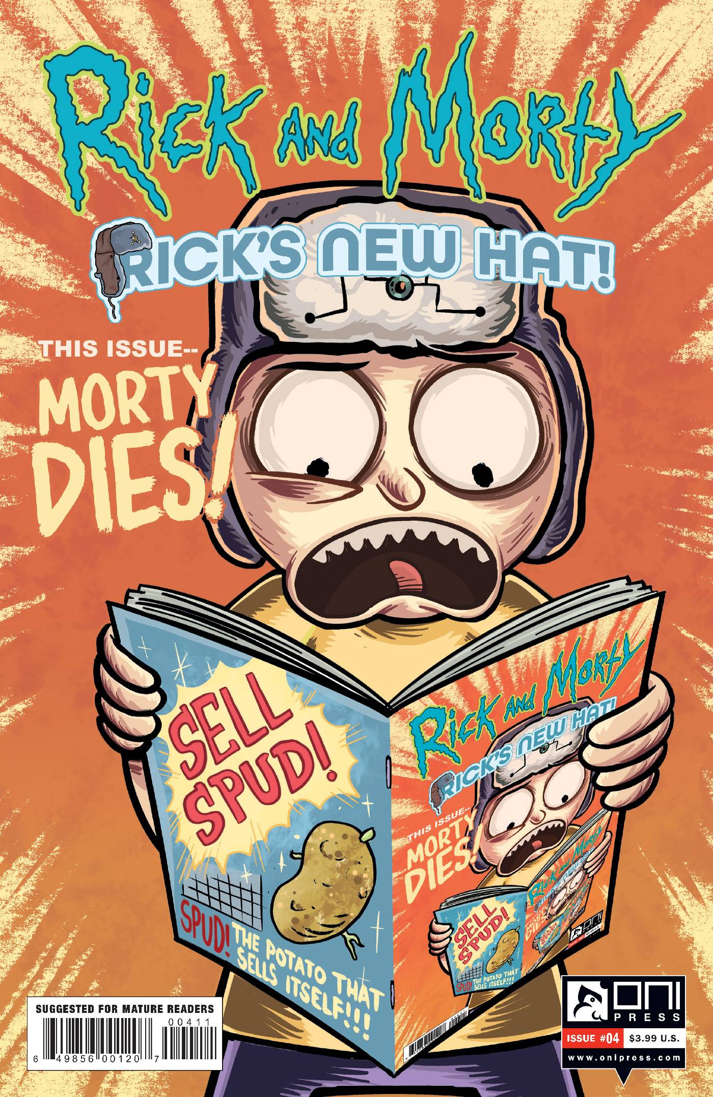 "It's the penultimate chapter of the comics event of 2021, and it's all Morty, all the time. Can Morty find the secret to a happy life as a JOCK?! It's back to school for Morty, and Rick is along for the ride. The hat, too. It's just so...darn...nice."