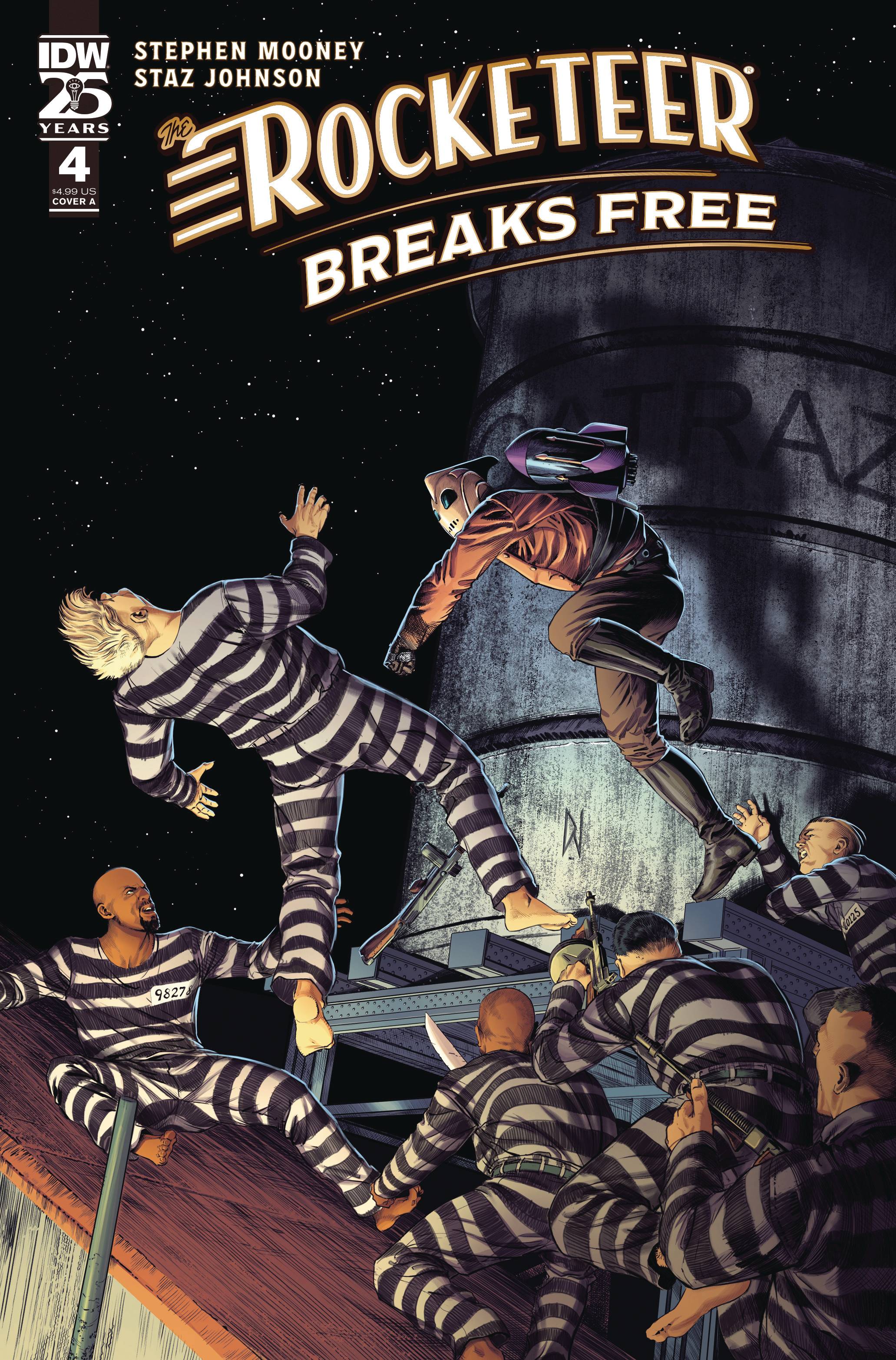 The Rocketeer has gone to Alcatraz in search of the traitor supplying the Nazis with the intel to attack America on her own soil. When he finds that the German invaders have gotten there ahead of him and are weaponizing the prisoners to stop our hero, Alcatraz turns into a battleground as all the opposing forces converge and the fate of America hangs in the balance.