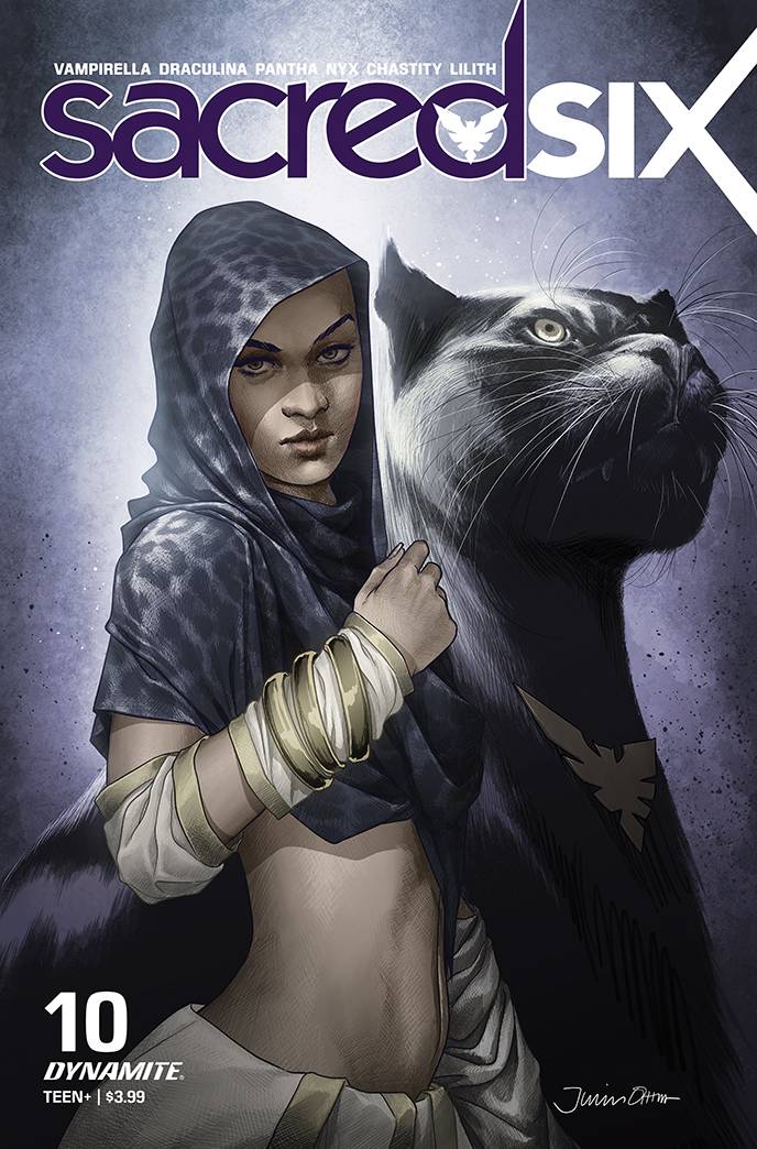 Our SIX newly-hired guns defend the peaceful vampires of Ashthorne from Chastity's old flame, the merciless vampire slayer LEVITICUS. Meanwhile, Victory struggles to hide her newfound faith from the team and Vampirella is (literally) not quite herself. also, Nyx's time-mashup adventure builds to a climax, but can she reclaim her hellfire scepter before her remaining life force expires?