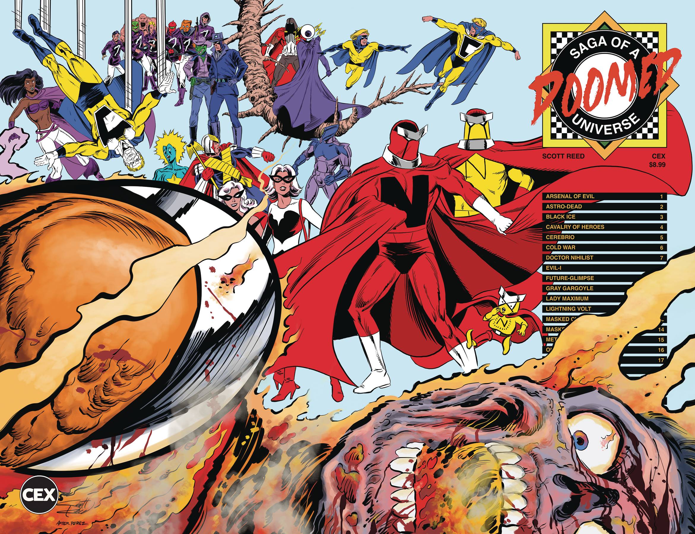 CEX Publishing is proud to present 1984's most shocking comic book, revealed at last! The heroes have been murdered -- all except for Roy Brannon, a costumed loser who could never become the champion that Earth needs. Now, it will be Roy's chance to prove everyone wrong.... even if he has to destroy the entire Universe to do it! This is the comic that changed everything, presented in three triple-sized volumes with six covers - including homages to some of the OTHER comics that changed everything!