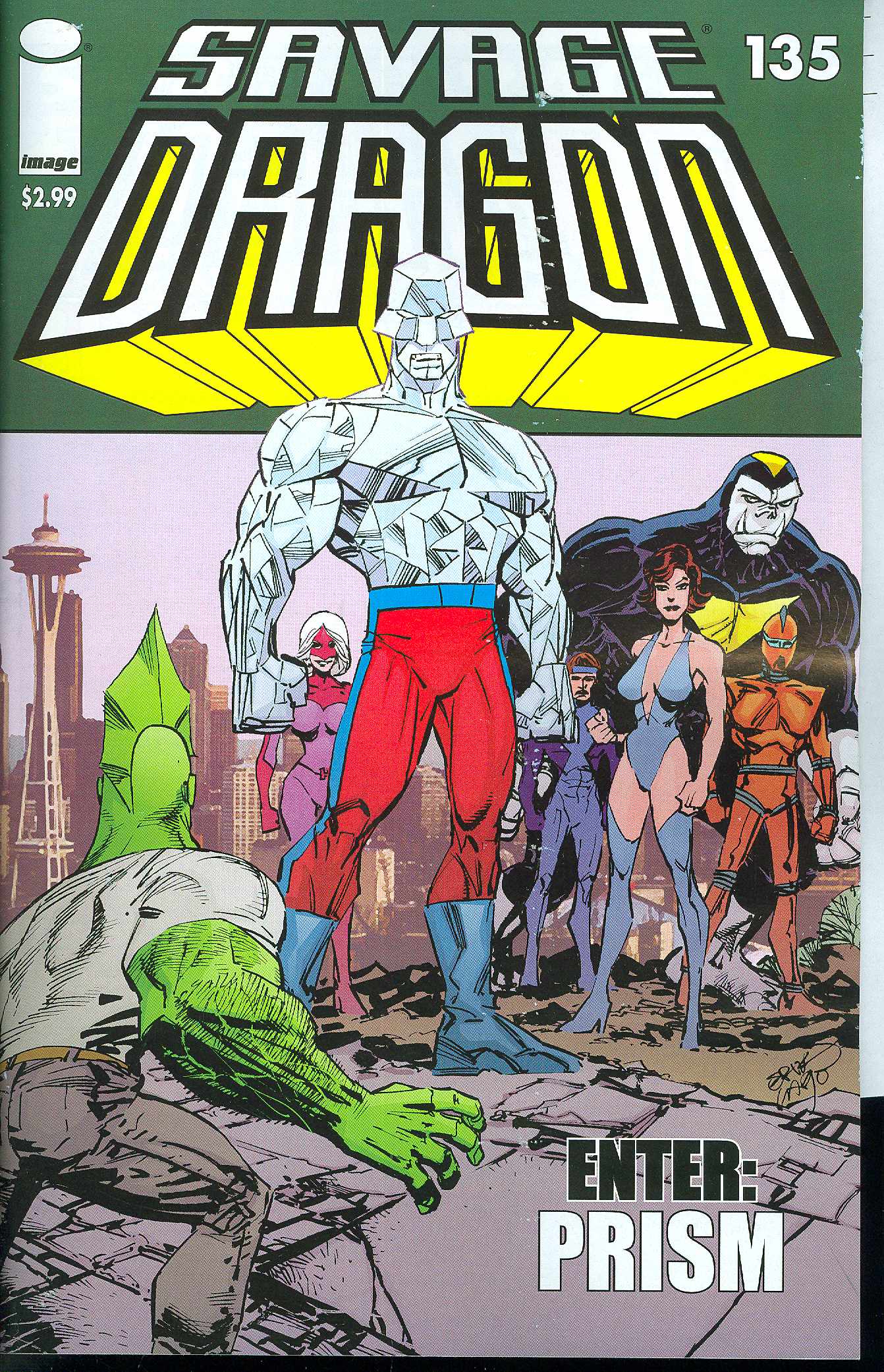 story ERIK LARSEN art & cover ERIK LARSEN 32pgs, FC $2.99 / MAY 23 "ENTER: PRISM"-The Savage Dragon's quest to find his wife leads him to Seattle, where he meets Prism and the Centurions. Dragon's tour of the Image Universe continues.