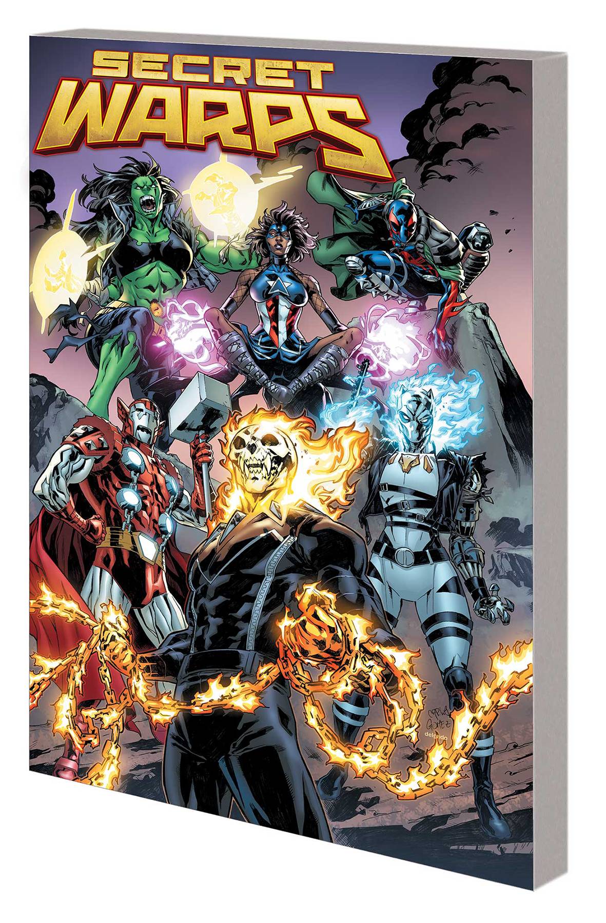 The mashed-up heroes of INFINITY WARPS return! When villains Madame Hel, Red Dormammu and Stane Odinson work together to cause a rift between Iron Hammer and Soldier Supreme, it leads to a crisis across space-time that brings together Weapon Hex, Ghost Panther, Arachknight and more to save their reality from cosmic calamity! The forces of Hell invade the streets of New York City! The cursed, stunt-riding king of Wakanda fights Martians in the year 2099! Arachknight's world collides with the New Supreme Universe, home of the Supreme Seven! And as strange new amalgamations take shape, can even Ghost Hammer change things back to normal? Plus: More mighty, uncanny tales of the warped warriors! Collecting SECRET WARPS: SOLDIER SUPREME ANNUAL #1, WEAPON HEX ANNUAL #1, GHOST PANTHER ANNUAL #1, ARACHKNIGHT ANNUAL #1 and IRON HAMMER ANNUAL #1. Rated T+