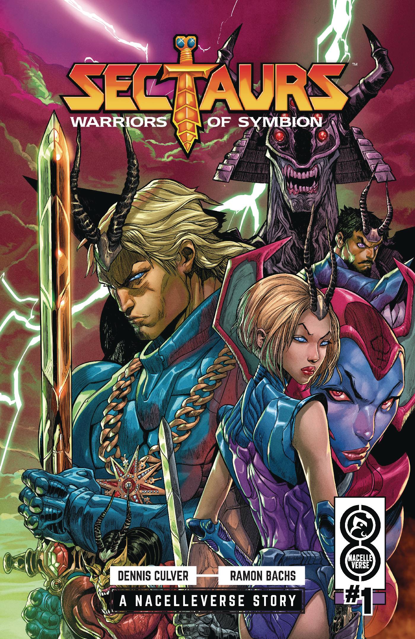 In the farthest reaches of the NACELLEVERSE, writer Dennis Culver (Justice League Incarnate) and dazzling artist Ramon Bachs (Star Wars: Bounty Hunters) transport you to the world of the SECTAURS: WARRIORS OF SYMBION! Millenia past, on the distant planet Symbion, a genetic experiment failed, and evolution took a strange turn. The result of this cataclysm? A world where insects can grow to monstrous proportions, and whose inhabitants have taken on the weird and wondrous characteristics of insects themselves! Telepathically bonded in battle, Sectaurs warriors unite with their insect companions in the ultimate fight for survival! Return to the fantastic alien realm of Symbion as the heroes of this classic '80s toy line return to forge their legend anew in an all-new series from Oni Press and the Nacelle Company!