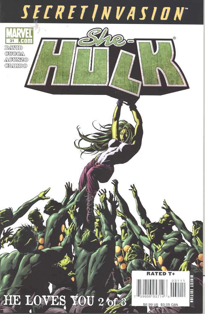 Written by PETER DAVID Art by VINCENZO CUCCA Cover by MIKE DEODATO SECRET INVASION tie-in and X-FACTOR crossover issue! It's double the trouble as our gamma-ray glamazon finds herself on a collision course with the mystery-solving X-Factor and hip-deep in the Skrull infestation! What does She-Hulk's partner Jazinda - who just happens to be a Skrull - know about the invasion...and is she part of it? And why has writer Peter David pitted the heroes of his two books against one another? All the answers are waiting for you here...and so is an exciting new art team! 32 PGS./Rated T+ ...$2.99