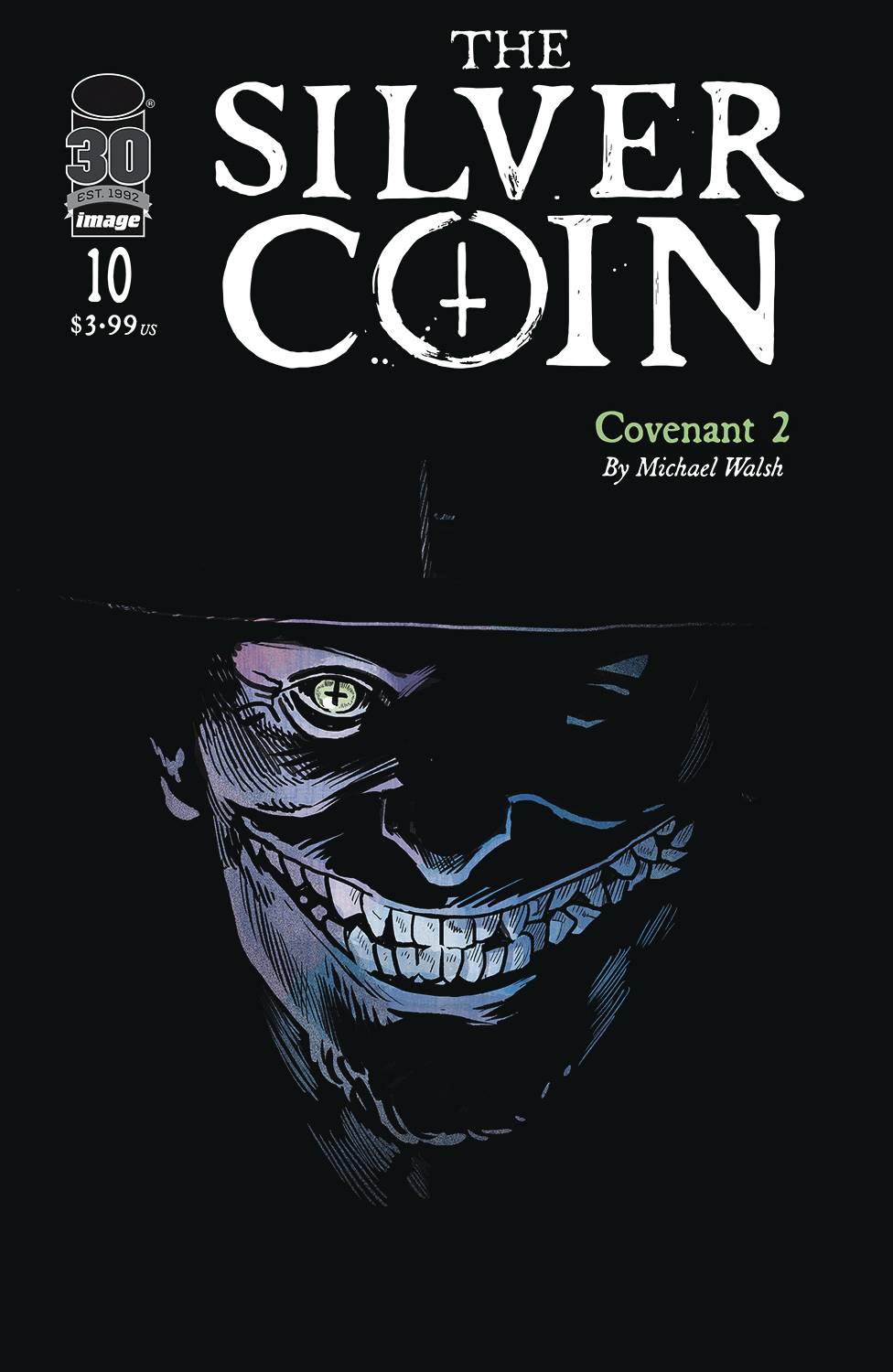 Next in THE SILVER COIN, the hit horror anthology from VITA AYALA, JOSHUA WILLIAMSON, RAM V, MATTHEW ROSENBERG, and MICHAEL WALSH, comes a sequel 300 years in the making. Audrey is a high schooler with an unusual ability who's drawn to the occult. When she encounters the coin, she conducts a ritual meant to break its curse but instead summons something darker still. The coin's mystery deepens in part two of "Covenant."