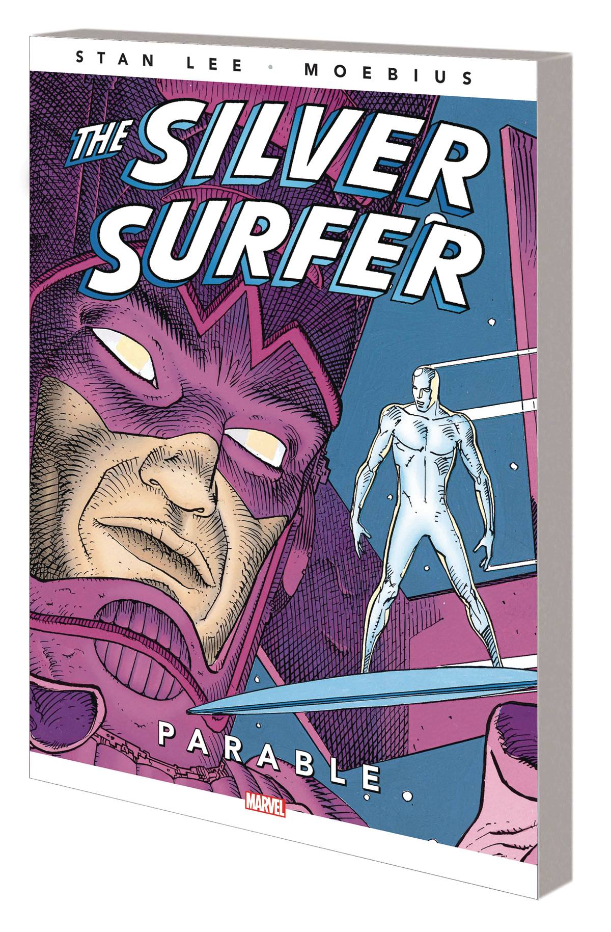 One of the all-time great stories of the Silver Surfer, by the legendary Stan "the Man" Lee and visionary French artist Jean Giraud, A.K.A. Moebius - as stunning now as it was 30 years ago! A star falls to Earth. Panic grips the planet as mankind prepares for its inevitable end. But the star is a ship, and inside is a god. All he asks is adoration. Overcome with relief, man rushes to obey. There is only one voice of dissent that will not be silenced: the Silver Surfer, who recognizes the "god" as his former master! But why has Galactus encouraged mankind to live down to his darkest nature? The Sentinel of the Spaceways stars in a bewitching tale of man's folly and nobility. Collecting SILVER SURFER (1988) #1-2. Rated T+