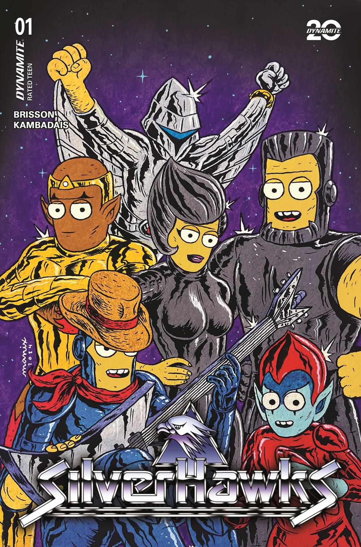 In the nearby galaxy of Limbo, the deadly mob boss Mon*Star has escaped from his confinement on Penal Planet 10 - and he's looking to take revenge on everyone who put him there! At the top of that list is Commander Stargazer, the grizzled space cop who personally took Mon*Star down the last time he went on a rampage. To recapture Mon*Star and his gang of super-criminal associates, Stargazer must put his retirement on hold and assemble a new team of his famed bionically enhanced law enforcers - the SilverHawks! Recruited from every corner of known space by the Federal Interplanetary Force, the SilverHawks were engineered to be the first line of defense against Limbo's ruthless agents of chaos. But during Mon*Star's long incarceration, the program went dormant, and its state-of-the-art tech has drifted towards obsolescence. Now, as they take on the galaxy's deadliest lawbreakers, Stargazer's new team of untested cyborgs - including Quicksilver, Bluegrass, Hotwing, Steelwill, Steelheart, and The Copper Kidd - will face the ultimate trial by fire! Rising star writer ED BRISSON (ThunderCats: Apex, The Uncanny X-Men) and acclaimed artist GEORGE KAMBADAIS (Gargoyles, Hercules) open up an all-new entry in the FIF's legendary case files with SilverHawks #1 - featuring beautifully polished covers from KAMBADAIS, LUCIO PARRILLO, JAE LEE & JUNE CHUNG, JAMES STOKOE, IVAN TAO, DECLAN SHALVEY, MANIX, GERALDO BORGES, and DAVID COUSENS!