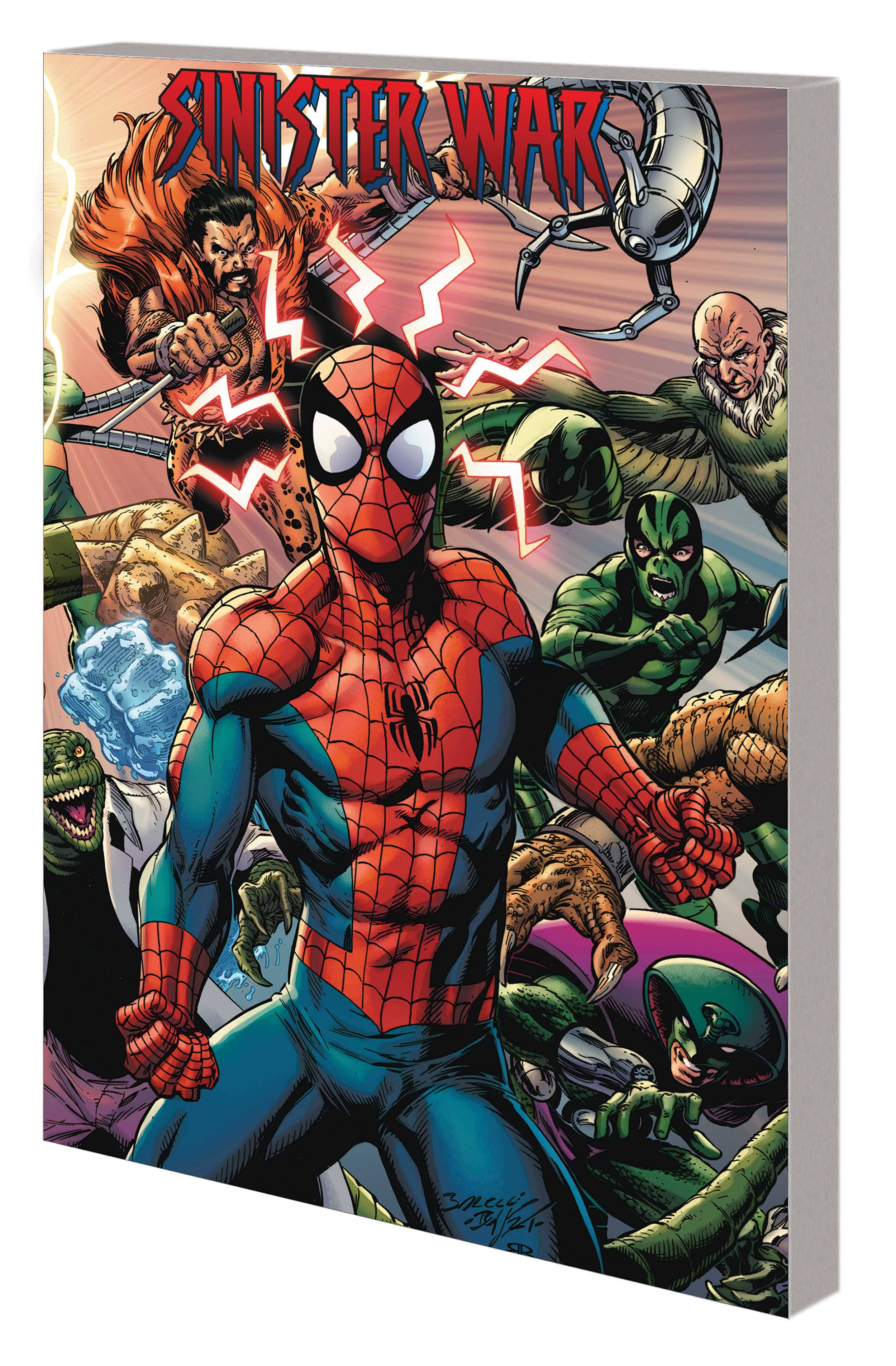 Doctor Octopus is back! He's assembled a new Sinister Six - and if you think he's thought big in the past, think again. But what Doc Ock doesn't know is that the Vulture has a sextet of his own: the Savage Six! Brace yourself for all-out war between two of the greatest villains in the Marvel Universe - and the only person they hate more than each other is Spider-Man! Spidey's in deep trouble with the toughest battle he's ever faced and a deadly dozen of his fiercest foes out for blood! AMAZING SPIDER-MAN scribe Nick Spencer and the legendary Artist Mark Bagley team up for an epic story guaranteed to shock readers! Collecting SINISTER WAR #1-4. Rated T+