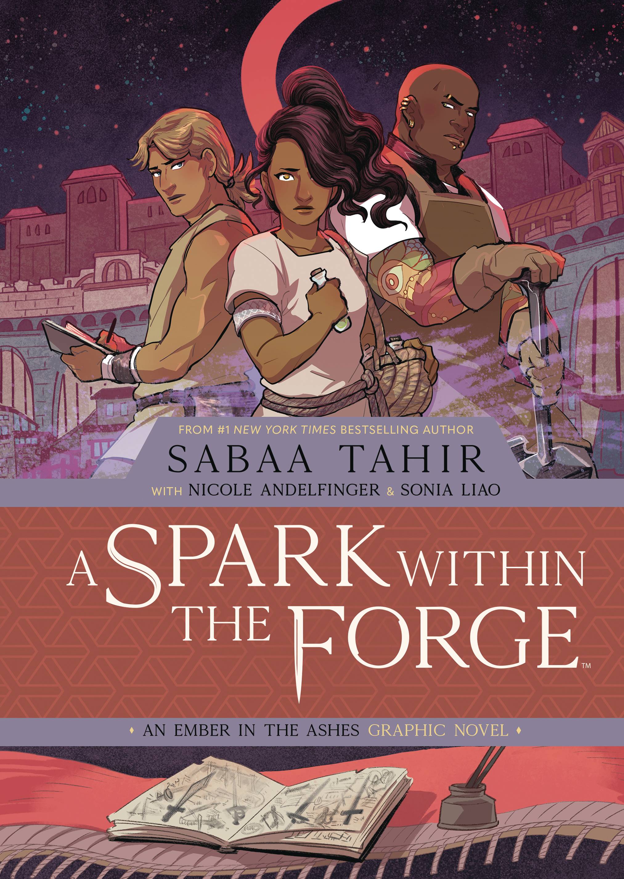 Before they were torn asunder, Laia lived happily and quietly with her Nan, Pop, and brother Darin within the Scholar district of Martial-ruled Serra. Although Laia is afraid to venture outside her home due to the heavy Martial presence, Darin loves to explore all parts of their home city... even those that are forbidden. A chance encounter with famed swordsmith Spiro Teluman, who sees in Darin a talent for forging weapons, leads him down a path that pulls him away from his family but towards hope for his people. Meanwhile, Laia is forced to take her brother's place accompanying Pop to combat a dangerous illness spreading quickly through Serra. When Laia discovers a surprising cure, will she brave exposure and the heavily-patrolled streets so she can save the city and someone she loves? This all-new original graphic novel set in the world of the New York Times bestselling An Ember in the Ashes novel series reunites novelist Sabaa Tahir and co-writer Nicole Andelfinger (Dragon Prince: Bloodmoon Huntress) with artist Sonia Liao (The Curie Society) to reveal the untold story of rebellion forged in the heart of the Empire!