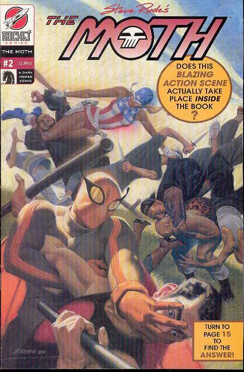 STEVE RUDE (A) and GARY MARTIN (W/A) On sale May 19, FC, 32pg You didn't listen to the warning about our last issue, did you? And you had to explain to your mommy how you got that whopping shiner! Well ... for The Moth #2 keep your head down because the action may smack you right between the eyes! American Liberty returns in this issue, and with her charming personality captures the heart of everyone in the circus. (With one exception.) Steve Rude's great art raises the bar for all other comics! So don't miss The Moth #2!