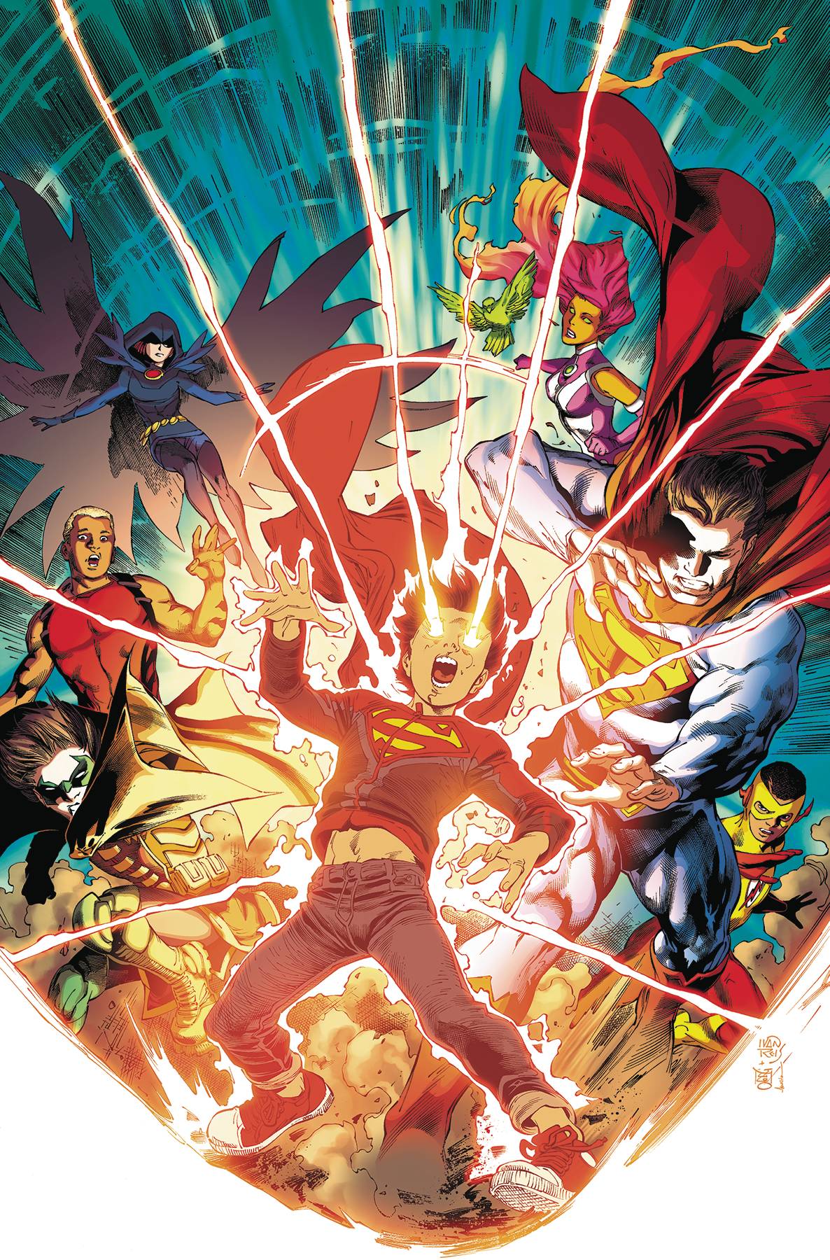 "SUPER SONS OF TOMORROW" part one! The four-part crossover between Superman, the Super Sons and the Teen Titans starts here! The Batman of Tomorrow travels to the present to prevent a cataclysmic disaster before it happens, revealing that Superboy will soon be responsible for the death of millions. But Superman will do anything to protect his son... and the Batman of Tomorrow is unwavering in his resolve to take down the Boy of Steel. Don't miss a clash of titanic proportion in the opening chapter of this game-changing story! RATED T