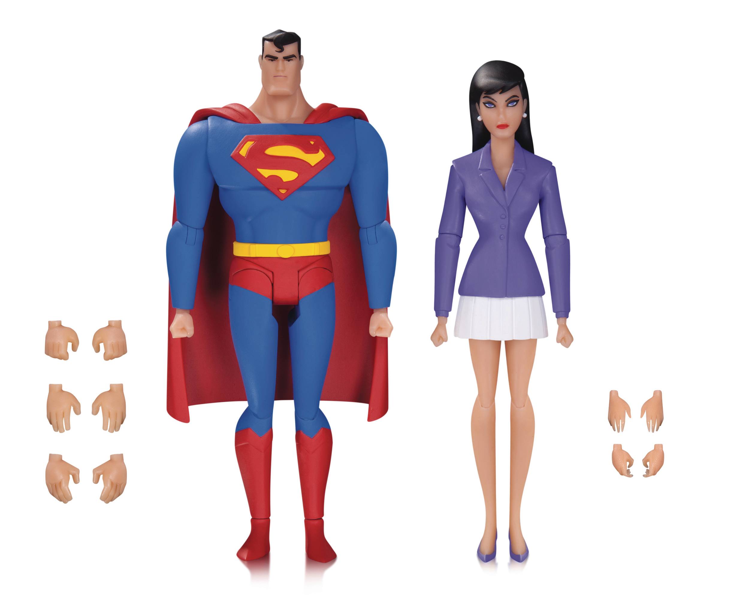DC's greatest animated couple is now available in this action figure 2-pack based on designs from SUPERMAN: THE ANIMATED SERIES. Created from actual design pages from the show's creators, these 6" renderings of Man of Steel and the Daily Planet's most daring reporter are brought to life in spectacular detail.
