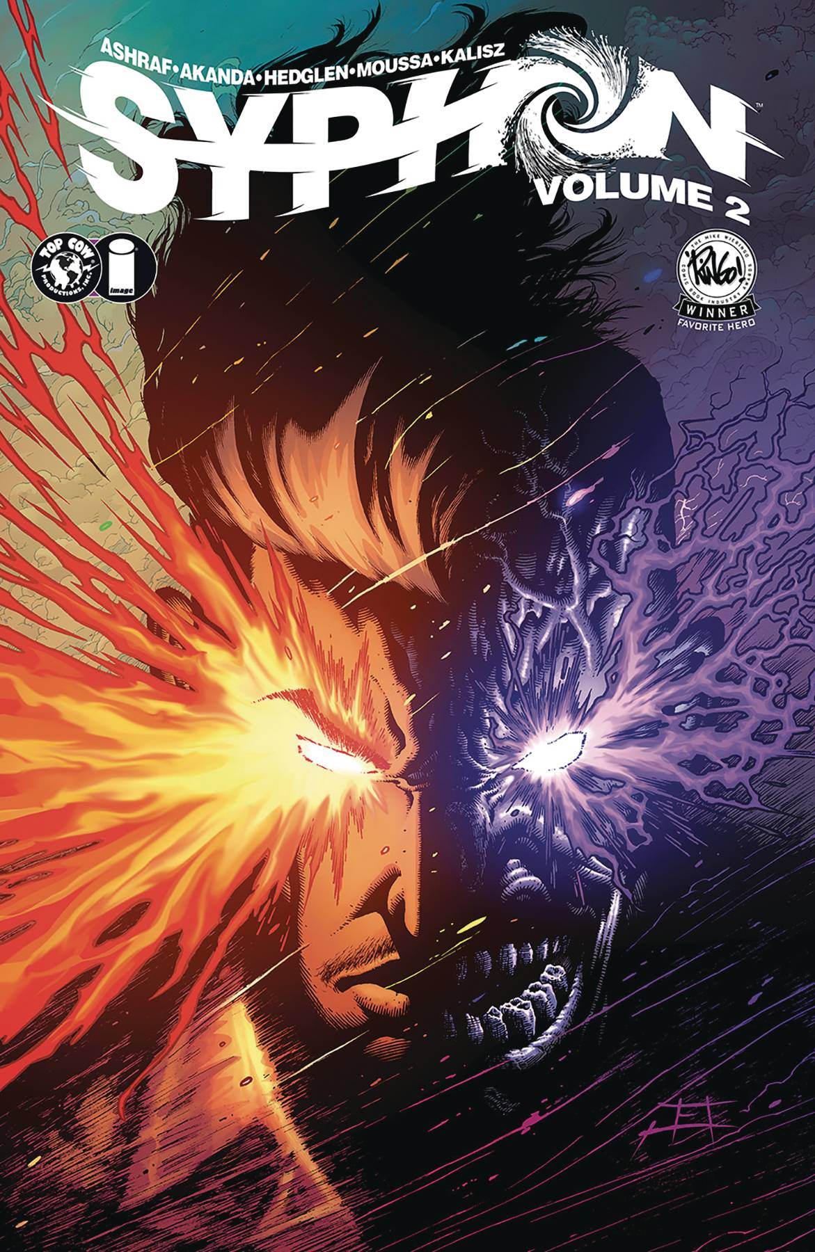 Sylas wields an ancient power to sense and siphon away pain from others, but struggles with the moral ambiguity of his abilities, leading him to question his purpose as a Syphon. Livia, his partner and a neuroscientist, explores the impact of emotional trauma and the ethics of healing from it. Together, they unravel secrets of the power that will forever change their relationship. Meanwhile, deep in the Amazon, an ancient threat re-emerges with plans to unleash a terrible darkness. The award-winning series returns with a new four-issue volume, written by creator Mohsen Ashraf and co-writer Arish Akanda, with art from Thomas Hedglen. Previously nominated for three 2022 Ringo Awards, including Best Series and Best Artist, and awarded Favorite Hero. Collects Syphon #1-4.