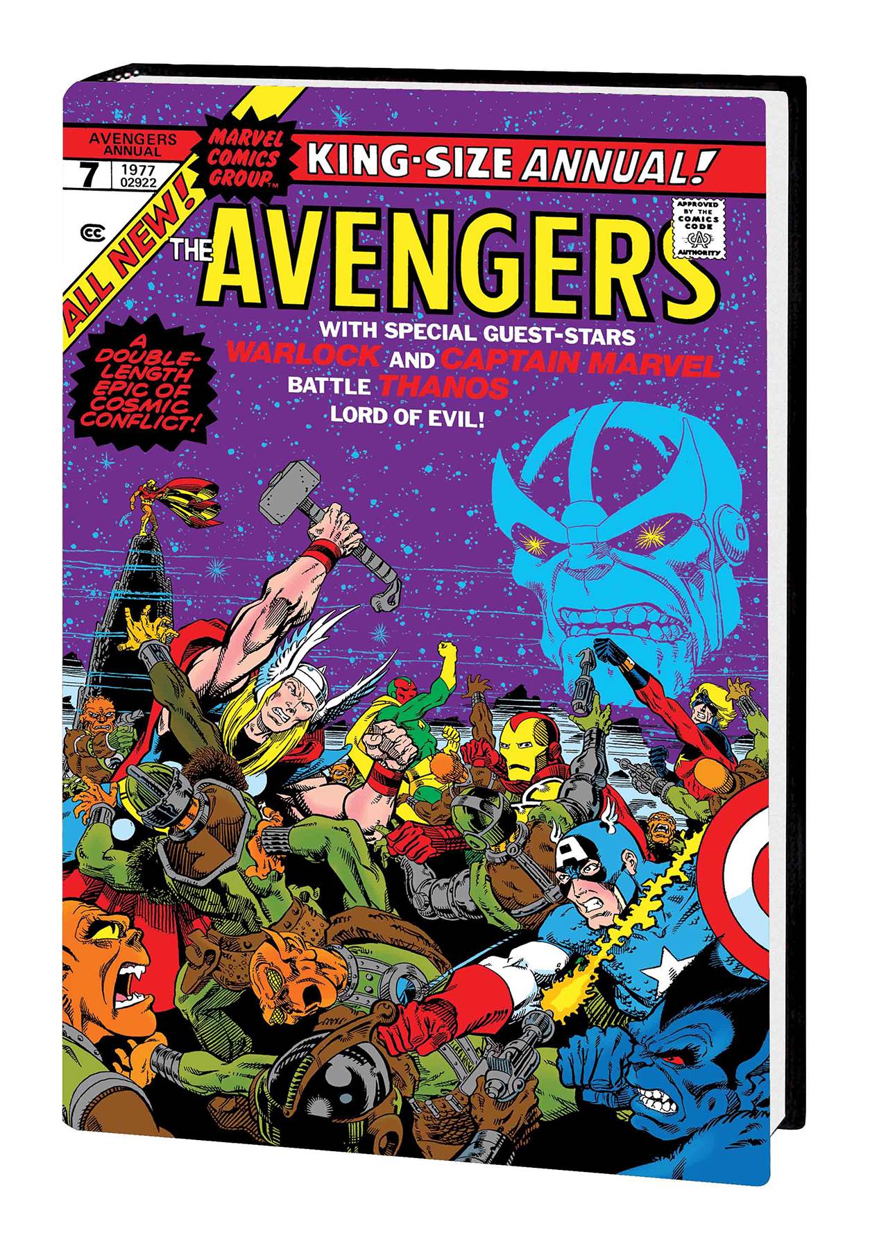 Before he eradicated half the Marvel Universe, Thanos fought his first Infinity Wars against Captain Marvel, Adam Warlock and the mighty Avengers! From the mind of the incomparable Jim Starlin, these epic battles redefined the cosmic stakes for Marvel's heroes and imbued Thanos with an existential spirit and cosmic scope that made the Mad Titan as compelling as he was dangerous! In this beautifully restored Omnibus edition, experience the first appearances of Thanos, Drax and Gamora; the initial assembling of the Infinity Gems; the re-invention of Captain Marvel and more! Collecting IRON MAN (1968) #55, CAPTAIN MARVEL (1968) #25-34, MARVEL FEATURE (1971) #12, AVENGERS (1963) #125, STRANGE TALES (1951) #178-181, WARLOCK (1972) #9-15, MARVEL TEAM-UP (1972) #55, AVENGERS ANNUAL #7, MARVEL TWO-IN-ONE ANNUAL #2, MARVEL GRAPHIC NOVEL #1 and material from DAREDEVIL (1964) #105 and LOGAN'S RUN #6. Rated T