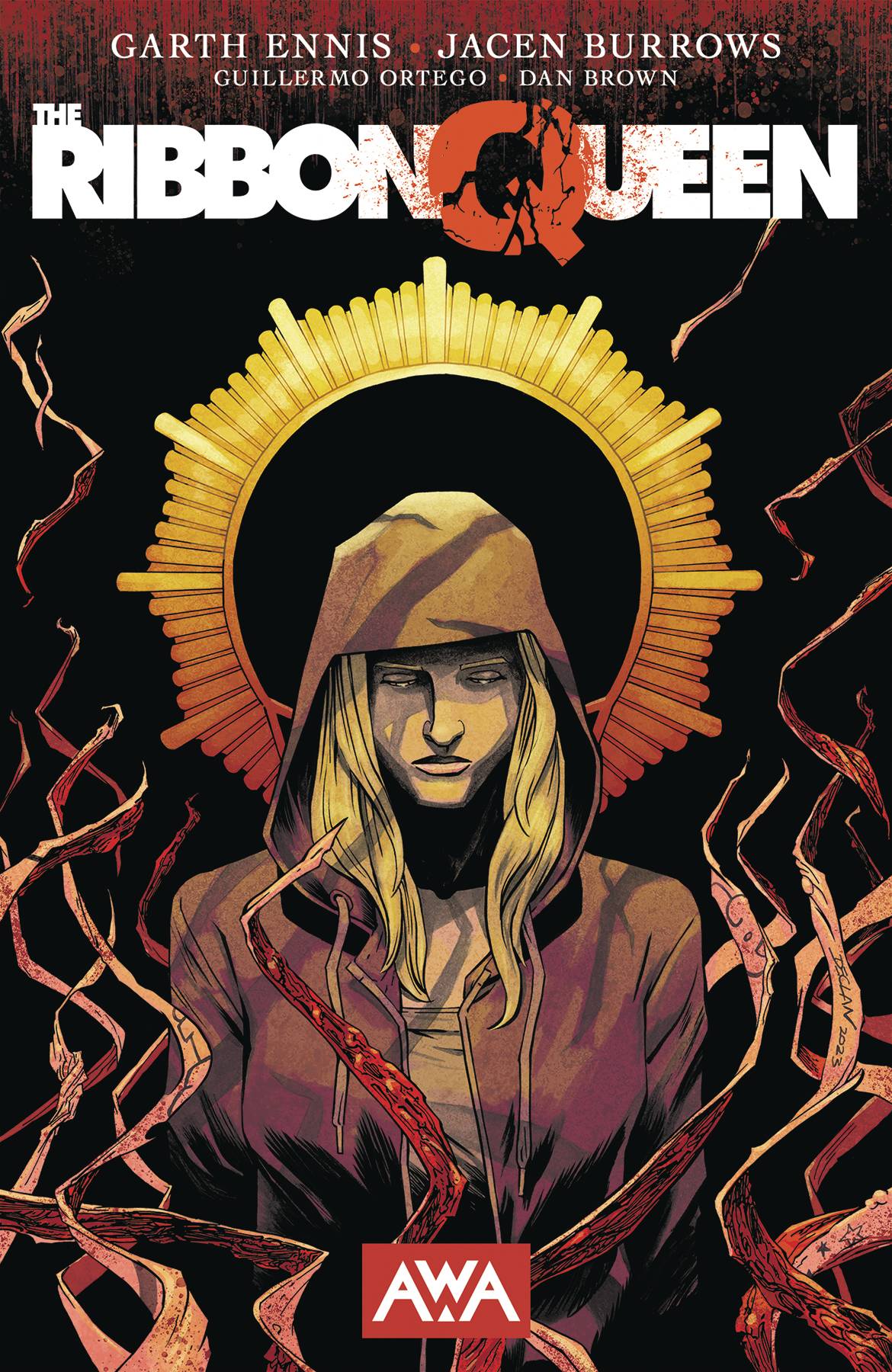 There is something ancient and terrible loose in the world of men. Something that hates them with burning passion, that bears a grudge born of ten thousand years. Something that wants its revenge. NYPD Detective Amy Sun has a problem: Three years ago, a young woman was rescued from a serial killer by a police tactical unit. Now she's dead, and Amy has a bad feeling that the SWAT team leader is responsible. As she investigates the existence of a corrupt cabal within her own precinct, Detective Sun soon discovers that there is something else on their trail - a force of vengeance older than the human race itself has awoken, invoked by the tormented murder victim in the weeks before she died, and is out for the blood of the guilty, who soon find themselves suffering a fate more gruesome than anything they could have dreamed of. The Ribbon Queen has come to New York City...and when she learns the truth, Amy is not at all certain that it should be stopped. Collects THE RIBBON QUEEN #1-8. Featured in Comics Beat's Best Horror Comics of 2023!