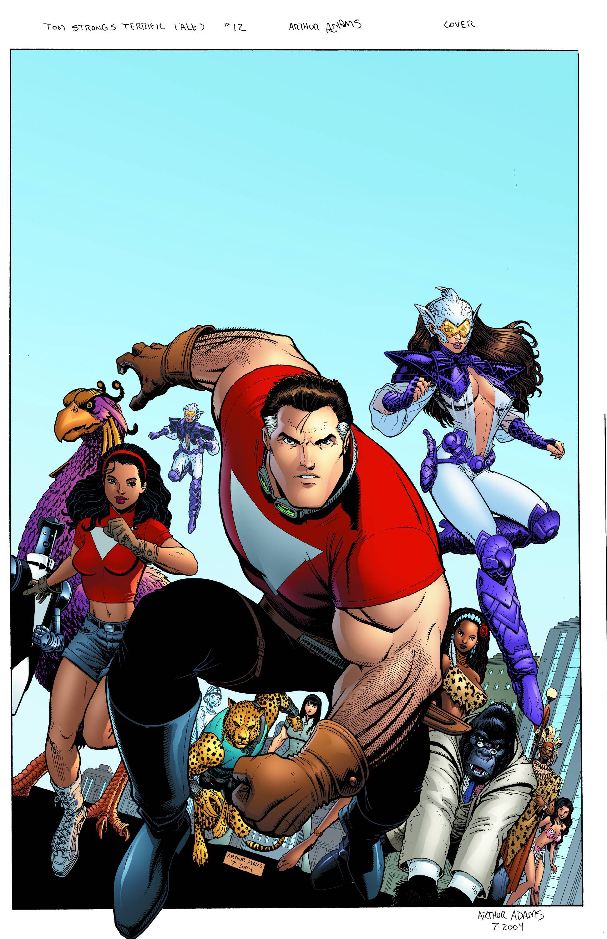 Written by Alan Moore & Steve Moore Art by Peter Bagge, Arthur Adams, Alan Weiss & Chris Weston Cover by Adams ABC. This final issue is an absolute classic! Alan Moore & Peter Bagge (Hate) collaborate on "The Strongs;" Jonni Future goes through the looking glass; and Young Tom Strong finally reaches the border of adulthood! Final issue. On sale Nov 17 32 pg, FC