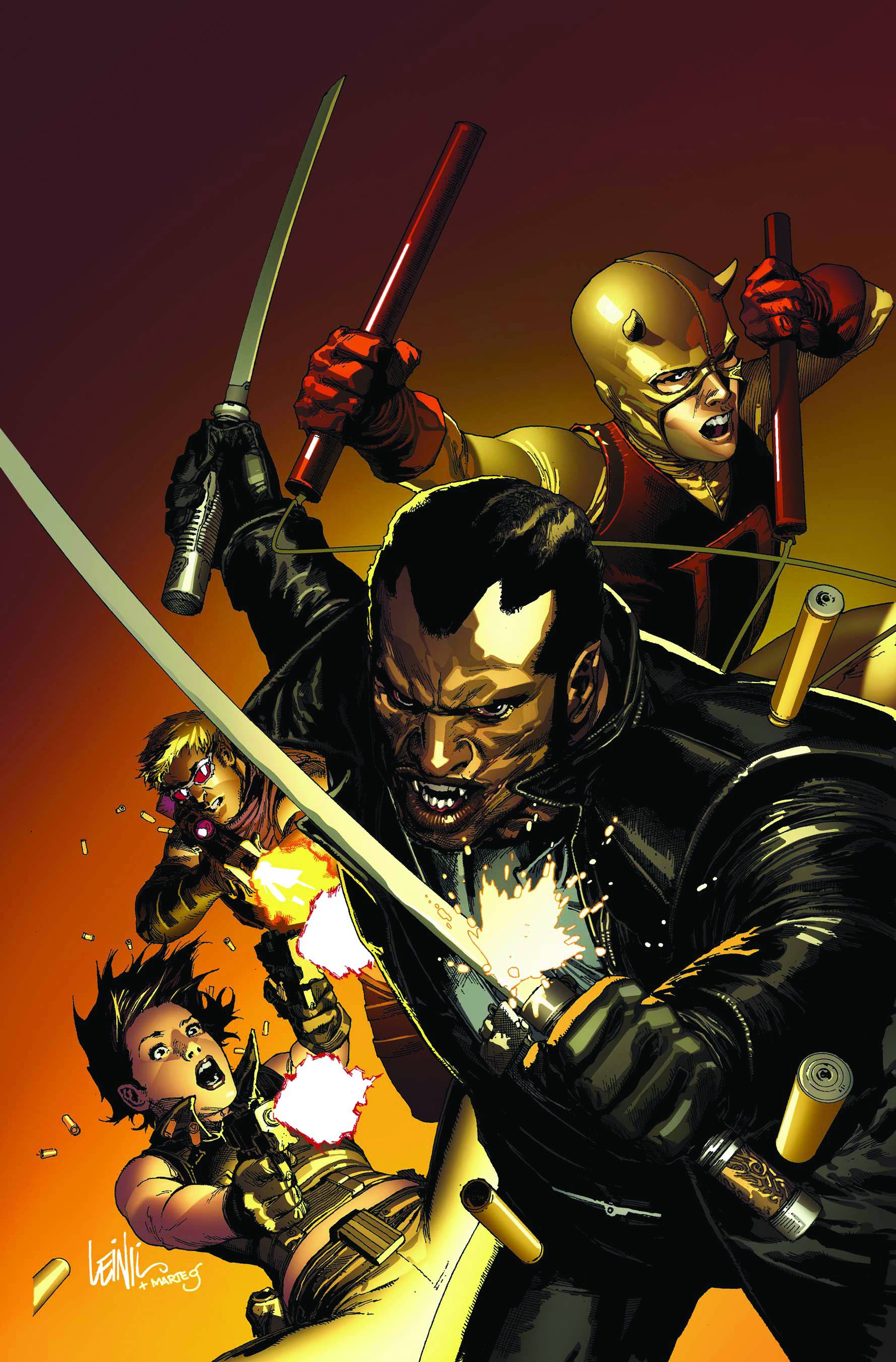 Written by MARK MILLAR Pencils by STEVE DILLON Cover by LEINIL FRANCIS YU Villain Variant by STEVE DILLON Foilogram Variant by LEINIL FRANCIS YU Blade is back in a bad way and that can only mean one thing: vampires are afoot! Somebody is leaving behind a bloody trail of bite marks and Blade's stake-ready to take them on. Could the mysterious figure donned in an iron suit have something to do with it? And who exactly is the new figure leaping around down in a devil costume? As the Avengers get deeper into black ops, there's no telling who'll be thirsting for blood and who'll be next on the menu! Bite into the next exhilarating series of ULTIMATE COMICS AVENGERS by superstar creators MARK MILLAR (CIVIL WAR, KICK-ASS) and STEVE DILLON (PUNISHERMAX)! 32 PGS./Parental Advisory ...$3.99