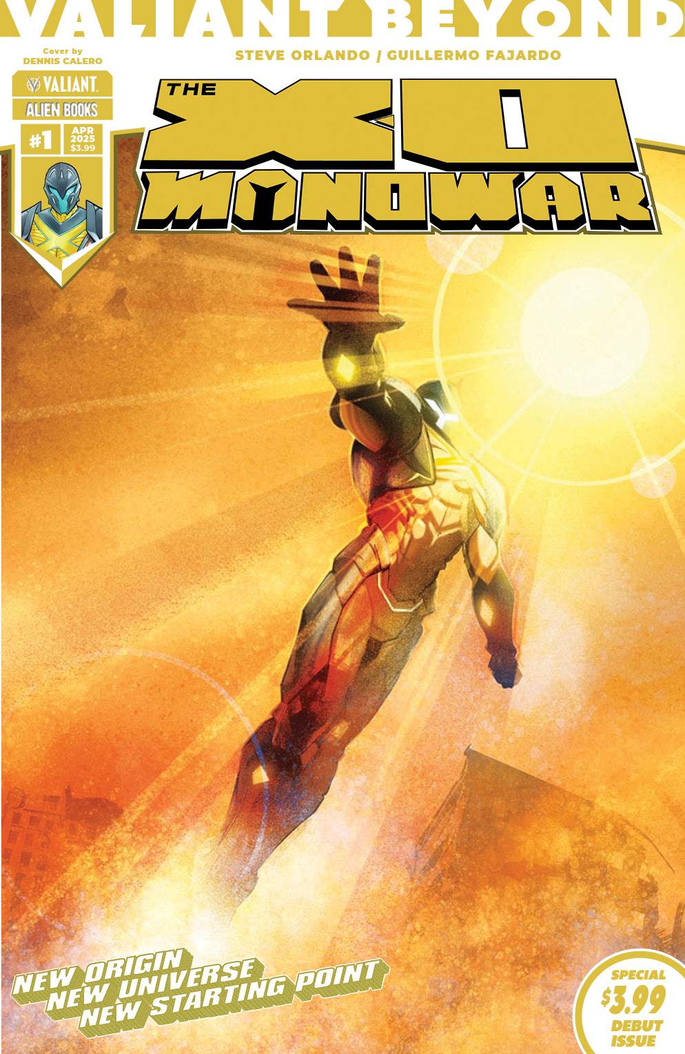 A NEW ERA OF SUPERHERO STORYTELLING BEGINS HERE! Designed as the ULTIMATE jumping-on point, the Valiant Beyond line of comics are ABSOLUTE must-reads that will ENERGIZE your love for superheroes! The mighty Aric of Dacia, aka X-O Manowar, traverses a deadly wasteland filled with mutated horrors in a search for honor in this CAN'T-MISS debut issue from GLAAD award nominated writer Steve Orlando (Avengers Assemble) and superstar artist Guillermo Fajardo (RESURGENCE)! Aric's strength and resilience are put to the test when he comes to the defense of a family under siege from a mysterious gang known as the Earthborn. Aric finds himself aligned with a rebel group which puts him firmly in the crosshairs of the Earthborn's leader Typhon. Can Aric survive his journey across the Red Steppe? Get locked and loaded for a four-part adventure with an all-new 28 page debut issue available at a special introductory price. It's X-O Manowar like you've never seen him before!