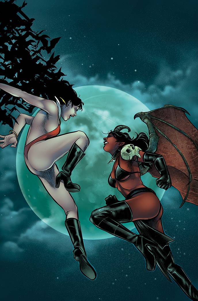 So yeah. Vampirella and Purgatori. Vampi, the Vampiri with a conscience and Tori, the lady-shaped creature who eats conscience. Working together? Not really. Working towards a common goal, while considering tearing each other's throats out, more like! And that common goal is to stop Lilith and her near-infinite minions from having their rough, rude way with the entire human race. The stakes are big enough... and sharp enough. Everybody's in... it's time to ante up.