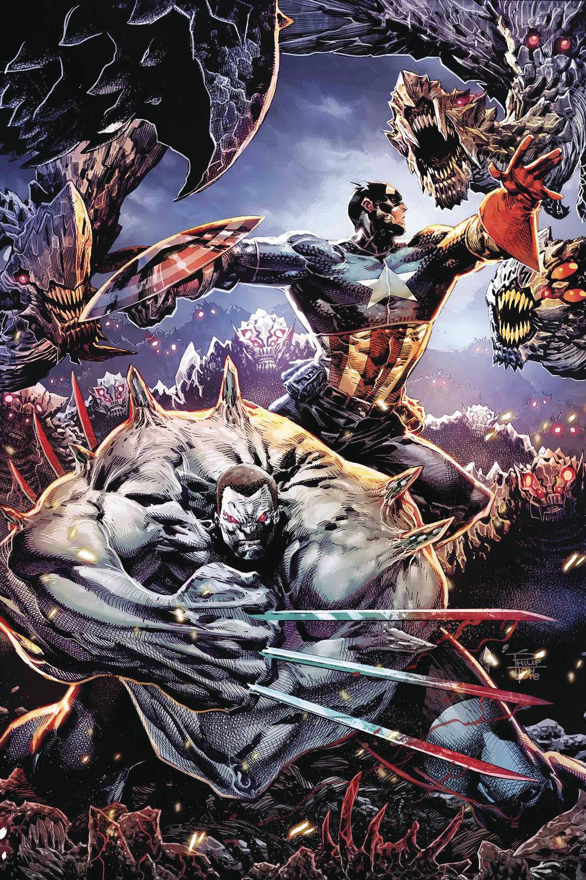 THE STARS AND SKRULLDUGGERS! • What are "Skrullduggers"? Dragon monsters with Skrull shape-shifting powers, obviously. • What else is in this issue? Captain America and the Hulkverine! Who's gonna buy this book? YOU! Rated T+