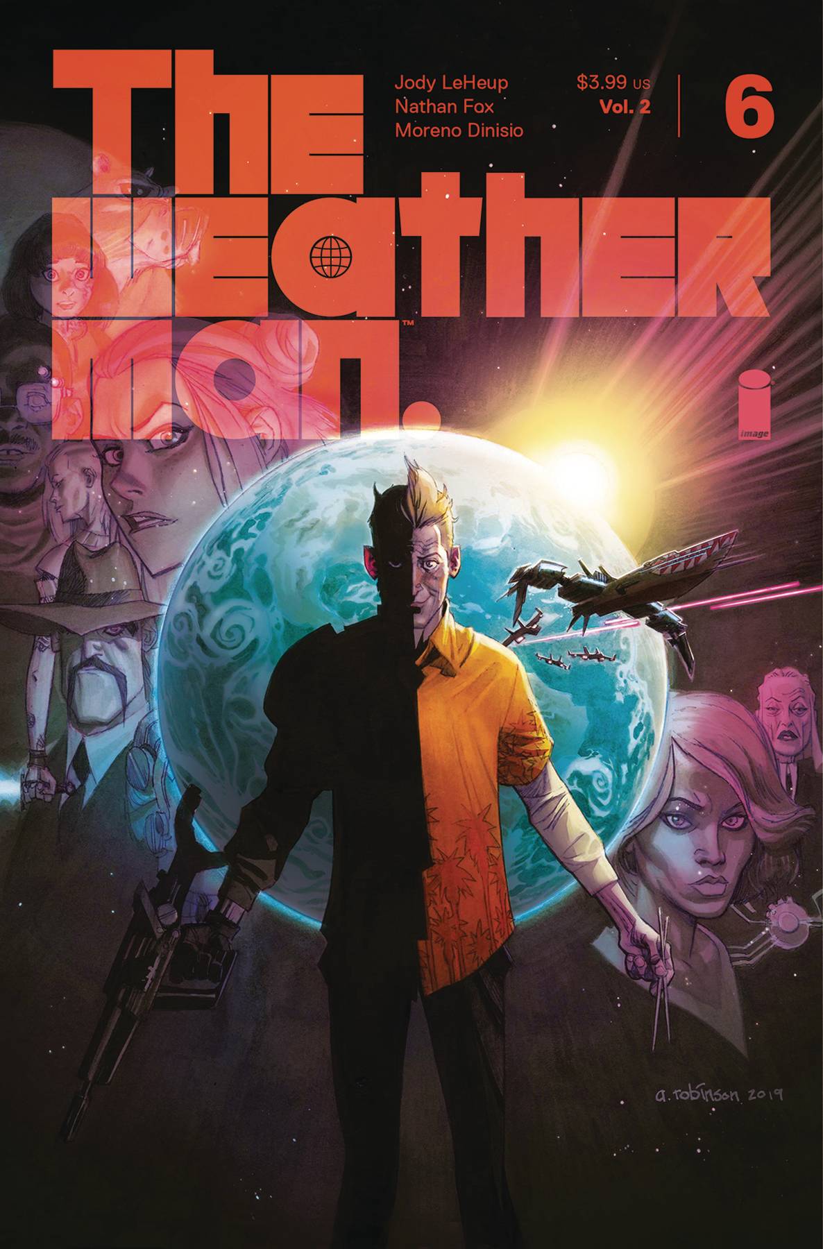 ADVANCE SOLICIT END OF STORY ARC NO SPOILERS! Cross and crew must do the impossible-escape Earth alive! HUGE revelations abound in this, the stunning conclusion of the second chapter of JODY LEHEUP and NATHAN FOX's must-read sci-fi instant classic THE WEATHERMAN!
