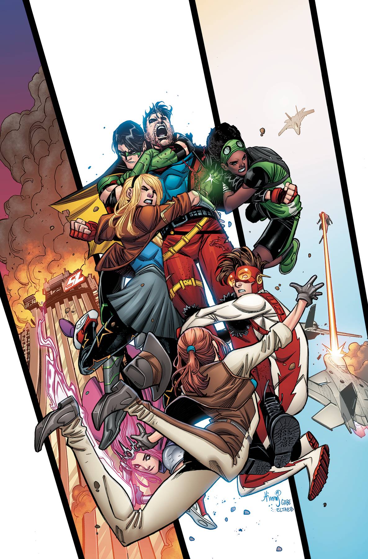 Lost in the Multiverse! The heroes of Young Justice must stay together as they fight to find their way home. Too bad they're about to cross paths with their own evil look-alikes! Plus, the secrets of Jinny Hex are revealed in a special sequence illustrated by Elena Casagrande! Get set for some of the craziest stuff you've seen in years! (Spoilers!)